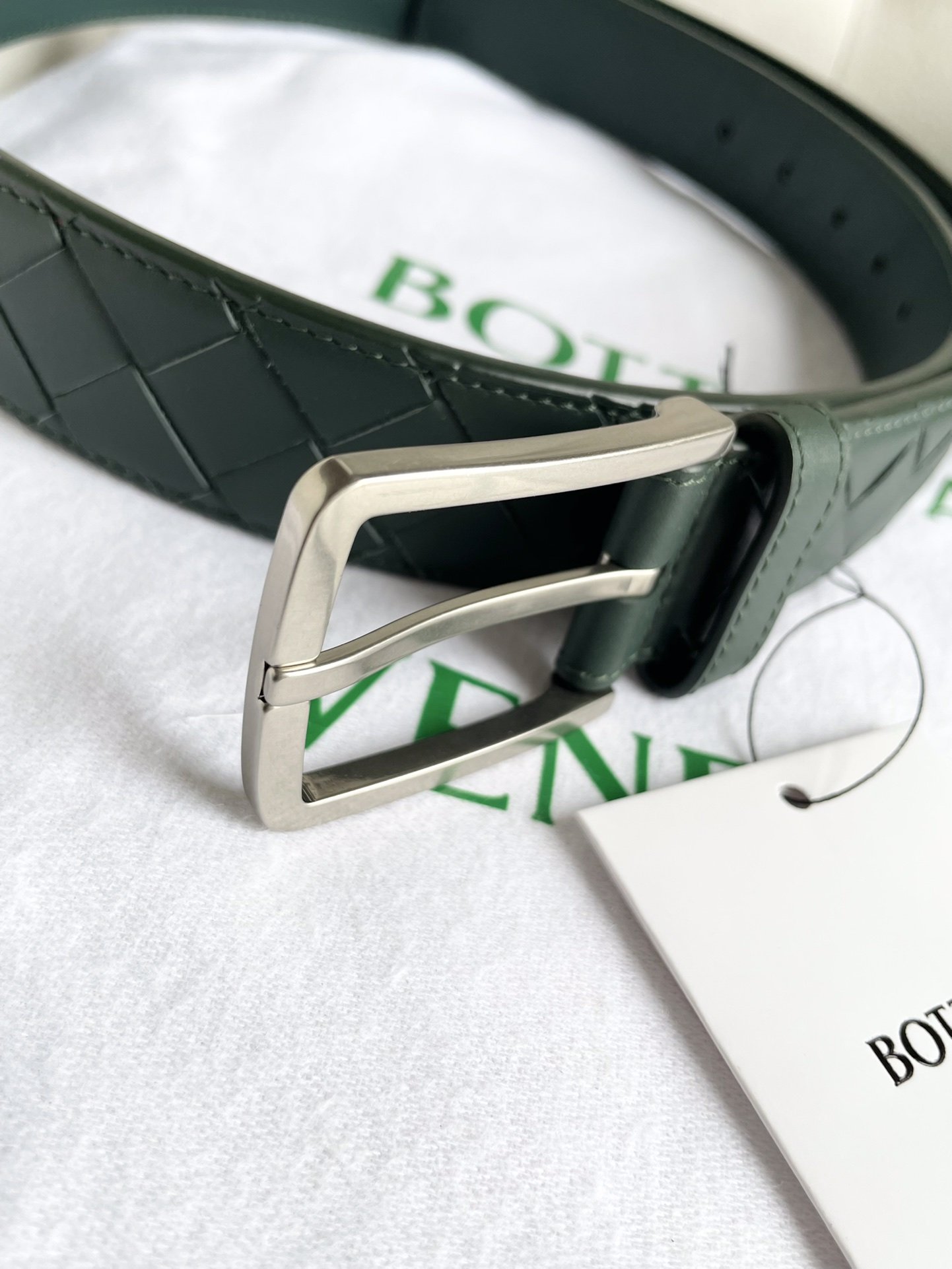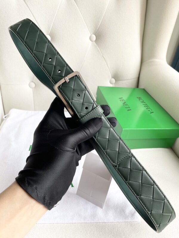 New 2024 enlarged intreccio large grid braid, Italian cowhide + fine copper silver pin buckle, width 35mm.