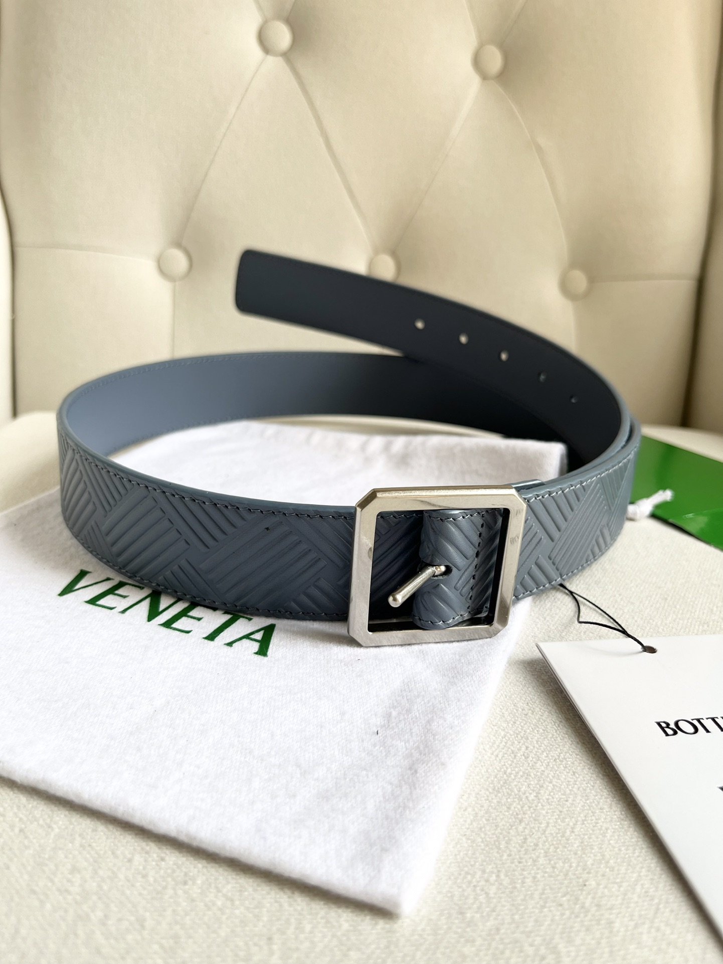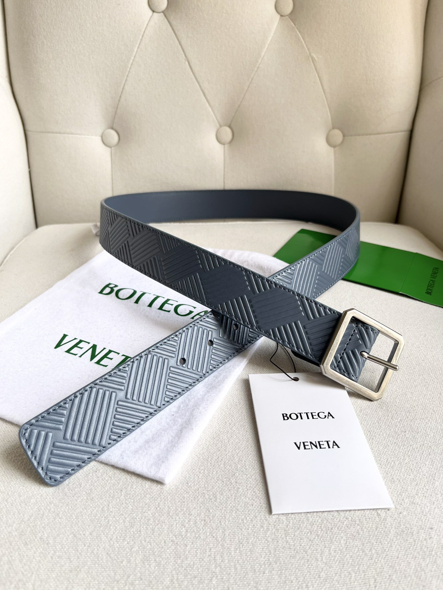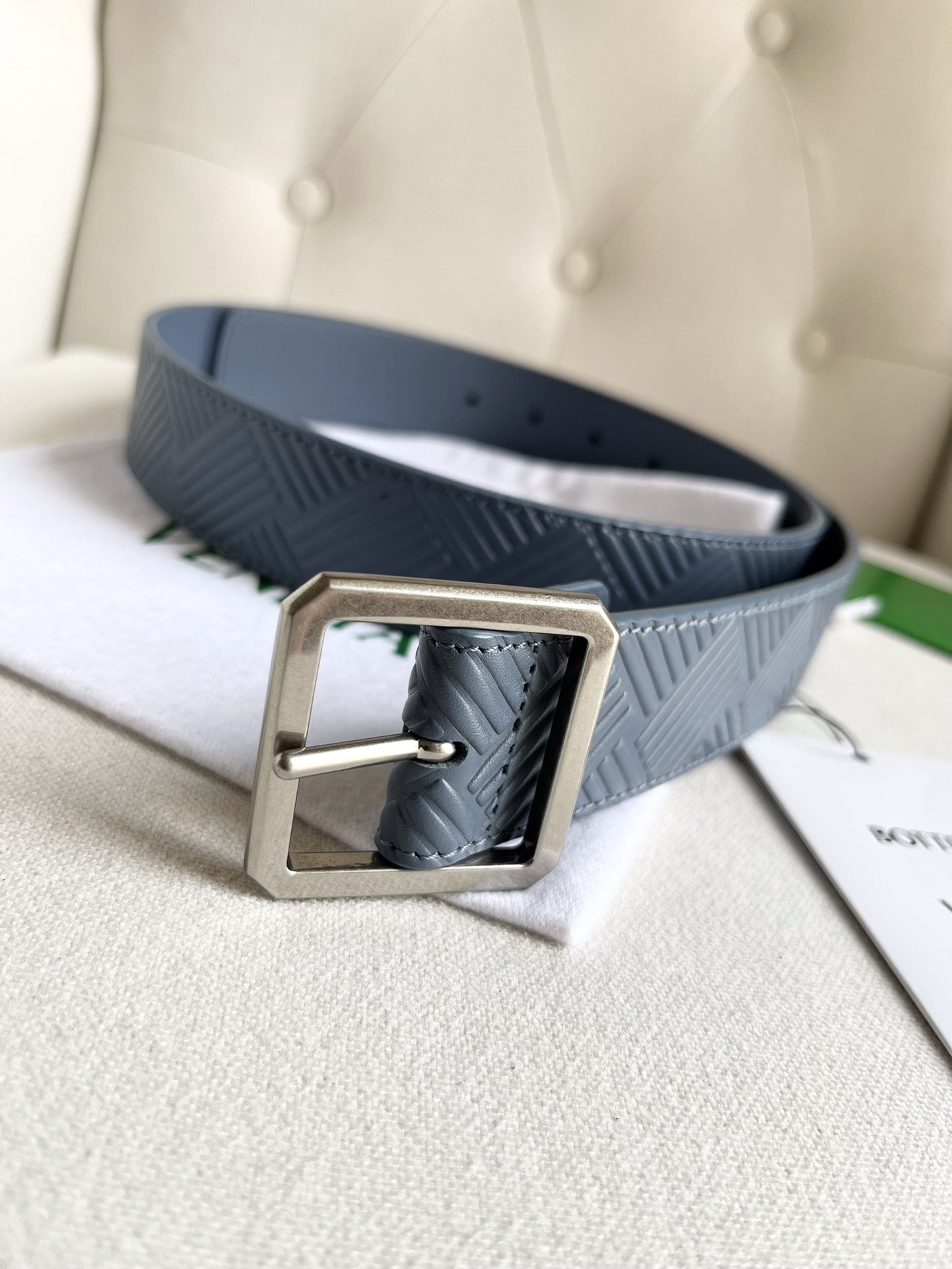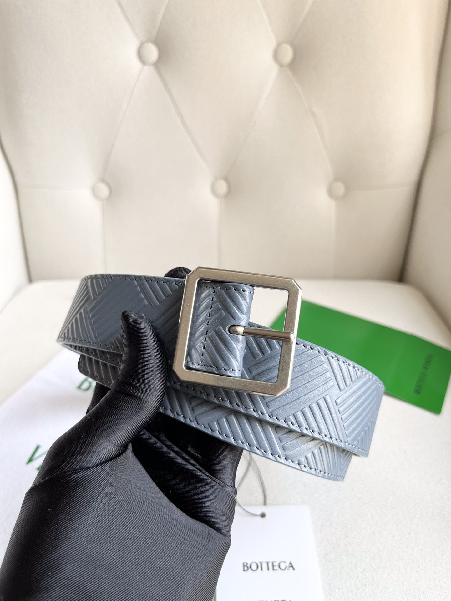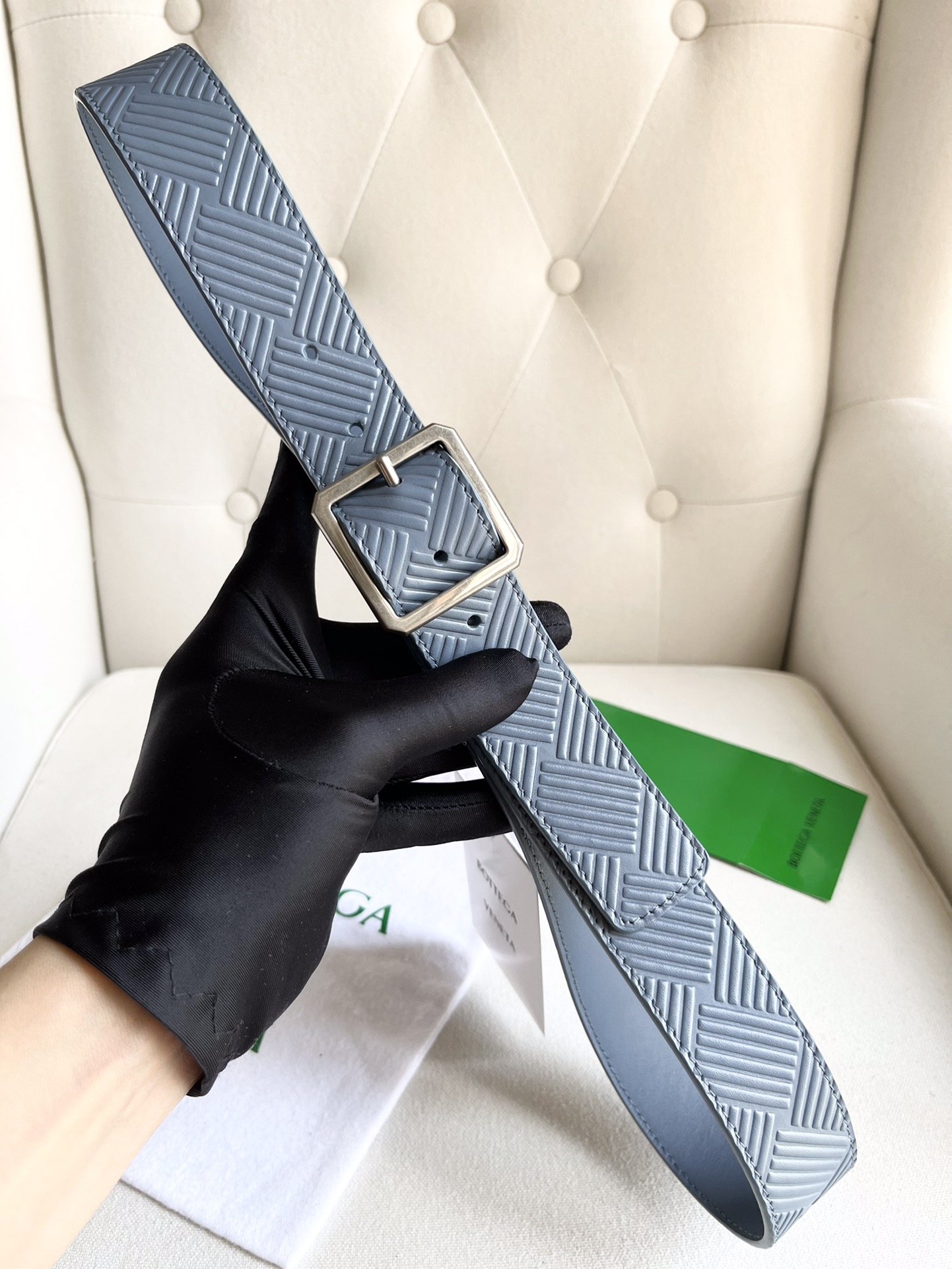 New 2024 men’s belt intreccio large grid weaving process double-sided Italian calfskin with pure copper retro silver square pin buckle width 35MM