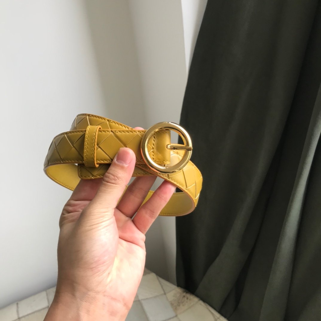 BV new women’s large grid braided belt Italian fetal sheepskin width 30mm P2020160
