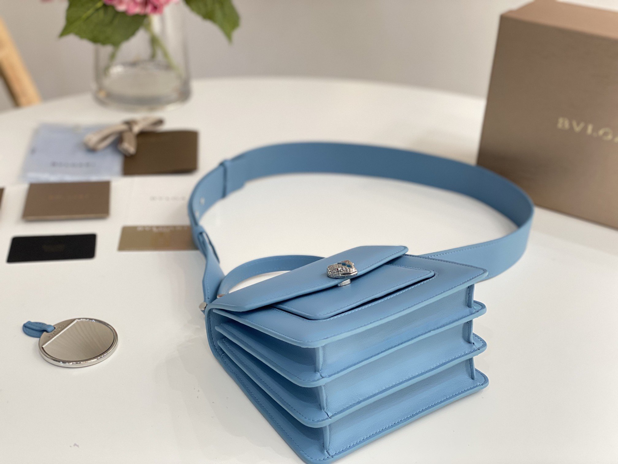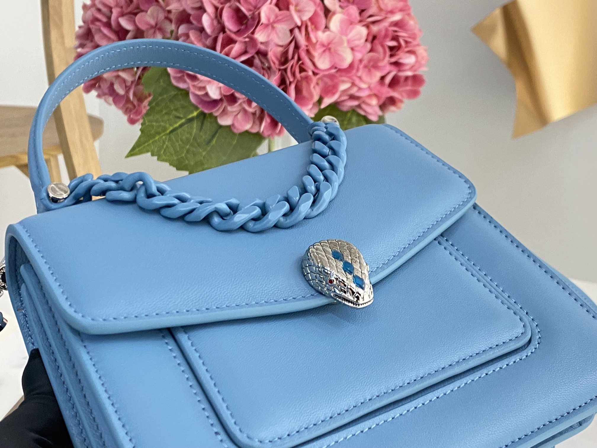 γB HomeγThe new paint chain ππππππππππ ππππππ series ushered in another masterpiece, a new crossbody bag with a more modern and everyday style. The Maxi Chain bag is crafted from soft black nappa leather with ruthenium-plated brass hardware. Ruthenium-plated brass Serpenti head closure with small black onyx snake scales in the center and red enamel eyes for a new look. The classic lacquered chain of the same color is decorated with a flip cover like a necklace, and can also be used as a delicate handle, showing the essence of the jewelry brand’s design. It features an interior organizer and an adjustable and detachable leather shoulder strap. The interior features one open pocket, one divided zipped pocket and a customizable make-up mirror. One front pocket and one back panel pocket. Model: B290874, Size: 18Γ15Γ9.5cm