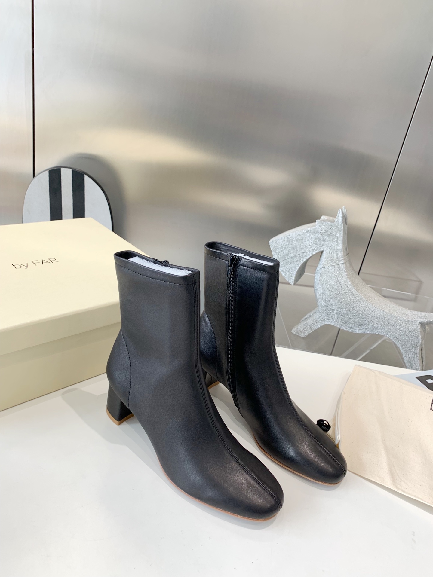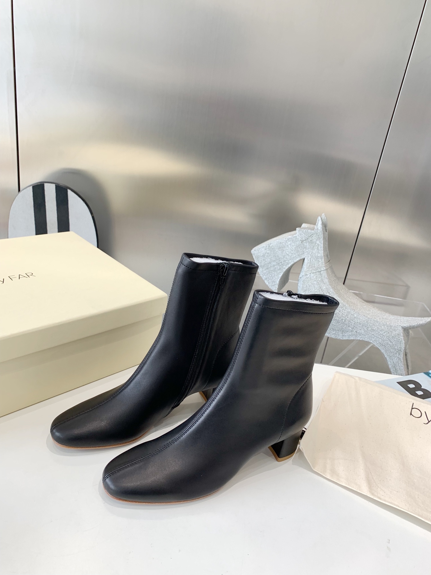 Original By Far women’s zipper ankle boots The uppers are made of Australian mixed sheepskin. One piece of sheepskin and one pair of shoes are self-willed. The cowhide ones on the market are not the right version. The inner lining is designed as cashmere on the reverse side of sheepskin, so it is softer. Italian leather outsole with a height of 6cm and a heel of 3cm. Size: 35-39