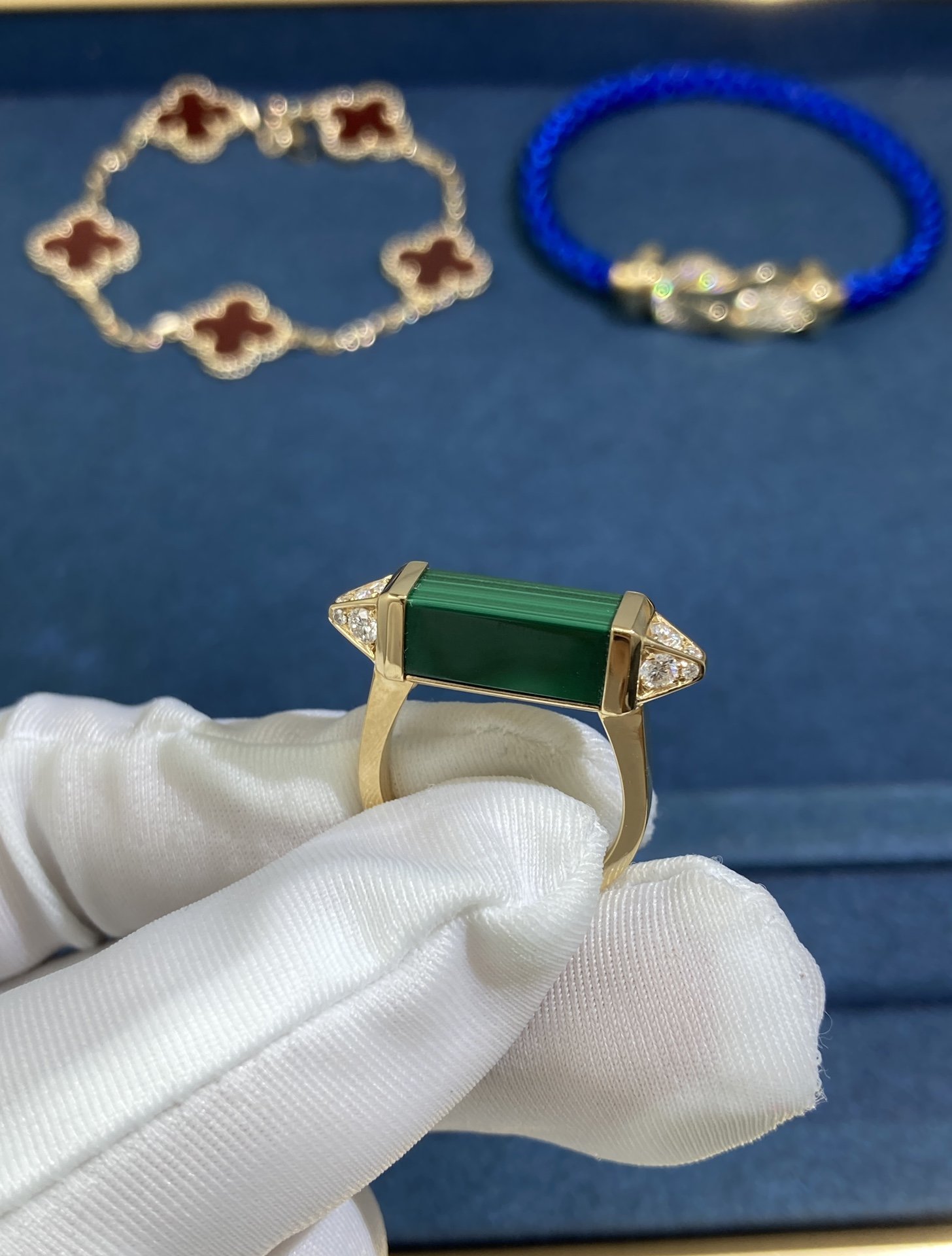 C Home Malachite Band Diamond Ring, Yellow Gold