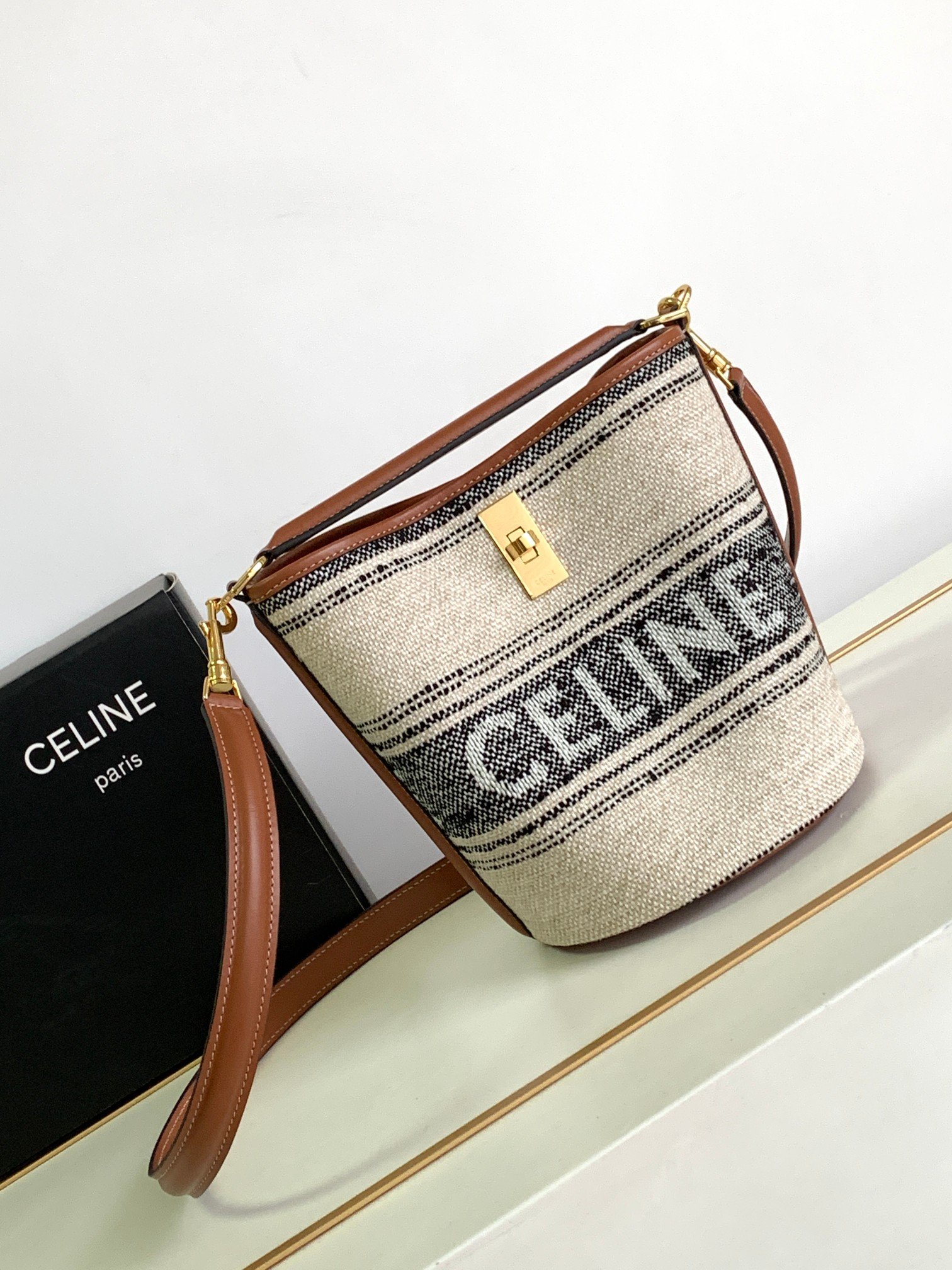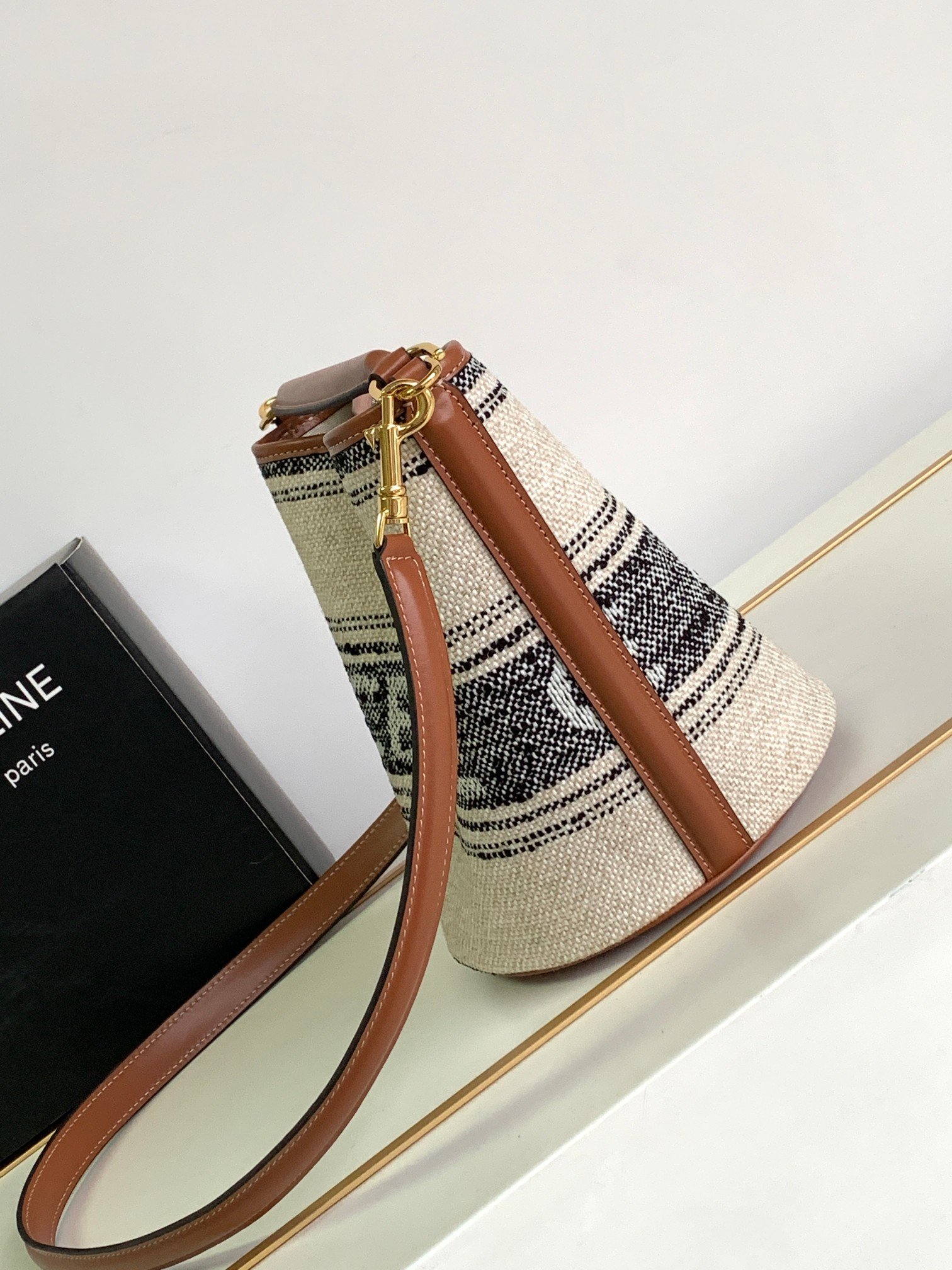 ] CELIN-E 23s early spring|BUCKET 16 mini jacquard striped fabric cow leather bucket bag