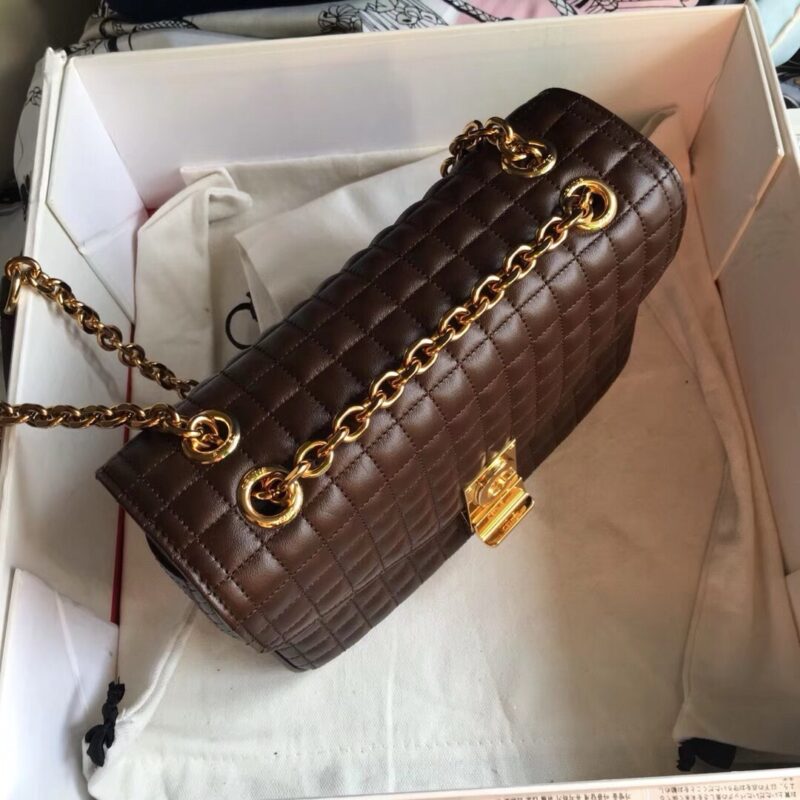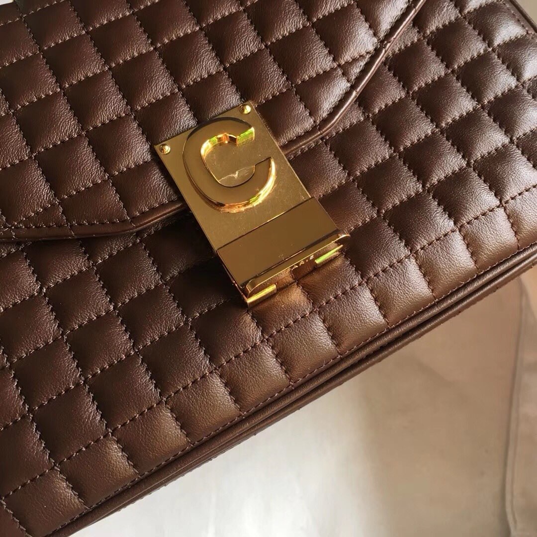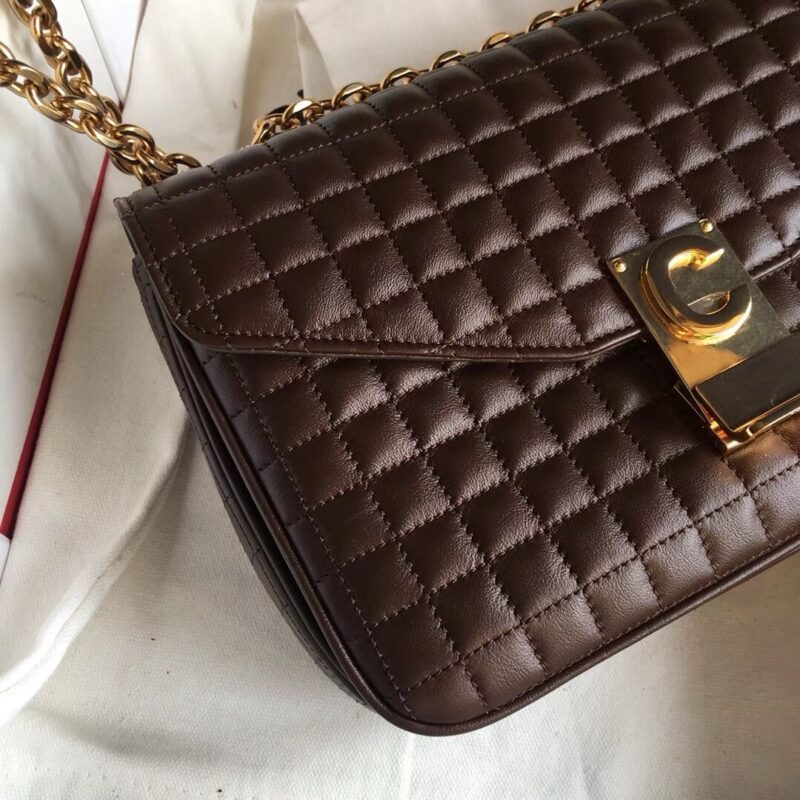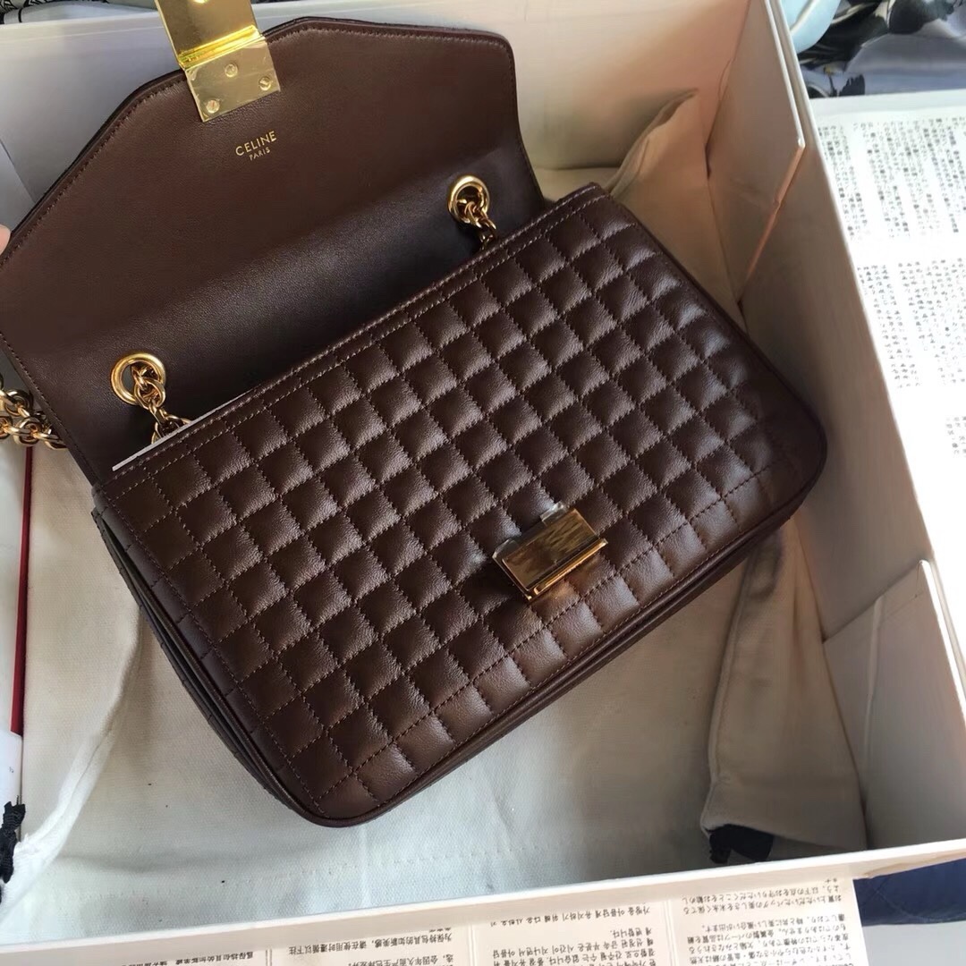 Сумка Celine c, двухцветная стеганая сумка на плечо из телячьей кожи среднего размера, импортная телячья кожа, золотистая фурнитура, подкладка из овчины, латунная пряжка с замком, можно носить на плече или через плечо, внутренний карман на молнии и плоский карман,