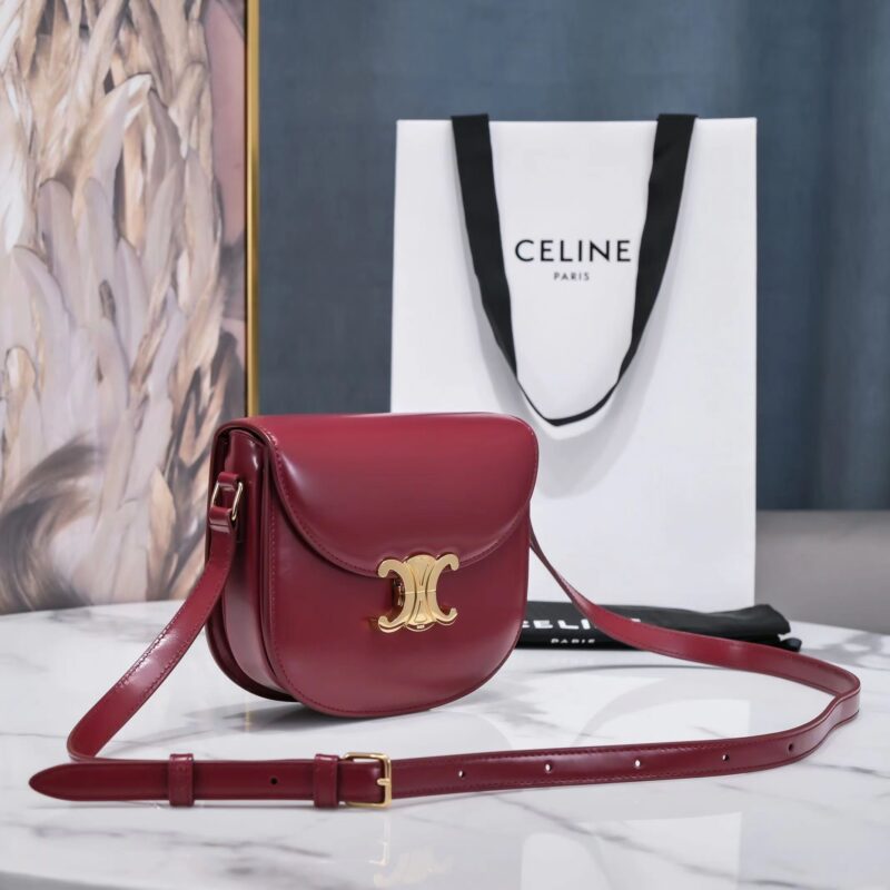 Celine Arc de Triomphe Saddle Bag in Wine Red Calfskin