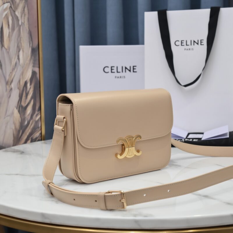 Celine Triomphe medium bag Leather [hand-grab pattern] inner sheepskin. This bag is full of retro feeling. The logo is inspired by the iron chain of the Arc de Triomphe in Paris. Inverted double C-shaped brass locks, full of retro flavor. It can be carried on the shoulder or cross-body, with inner zipper pocket and flat pocket. The adjustable wide shoulder strap design is more suitable and will not scratch the clothes. It is more refined and textured than the classic box. Model 187363. Dimensions: 22×16.5×7