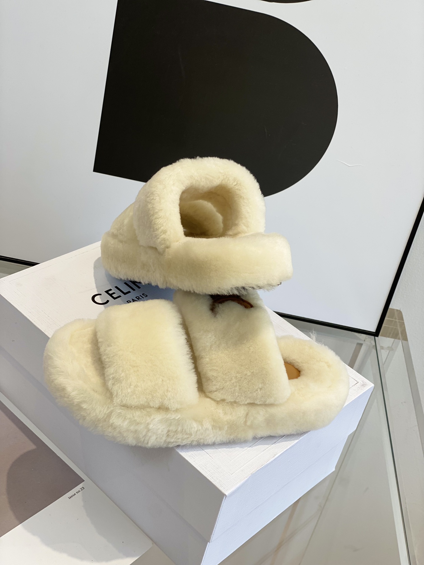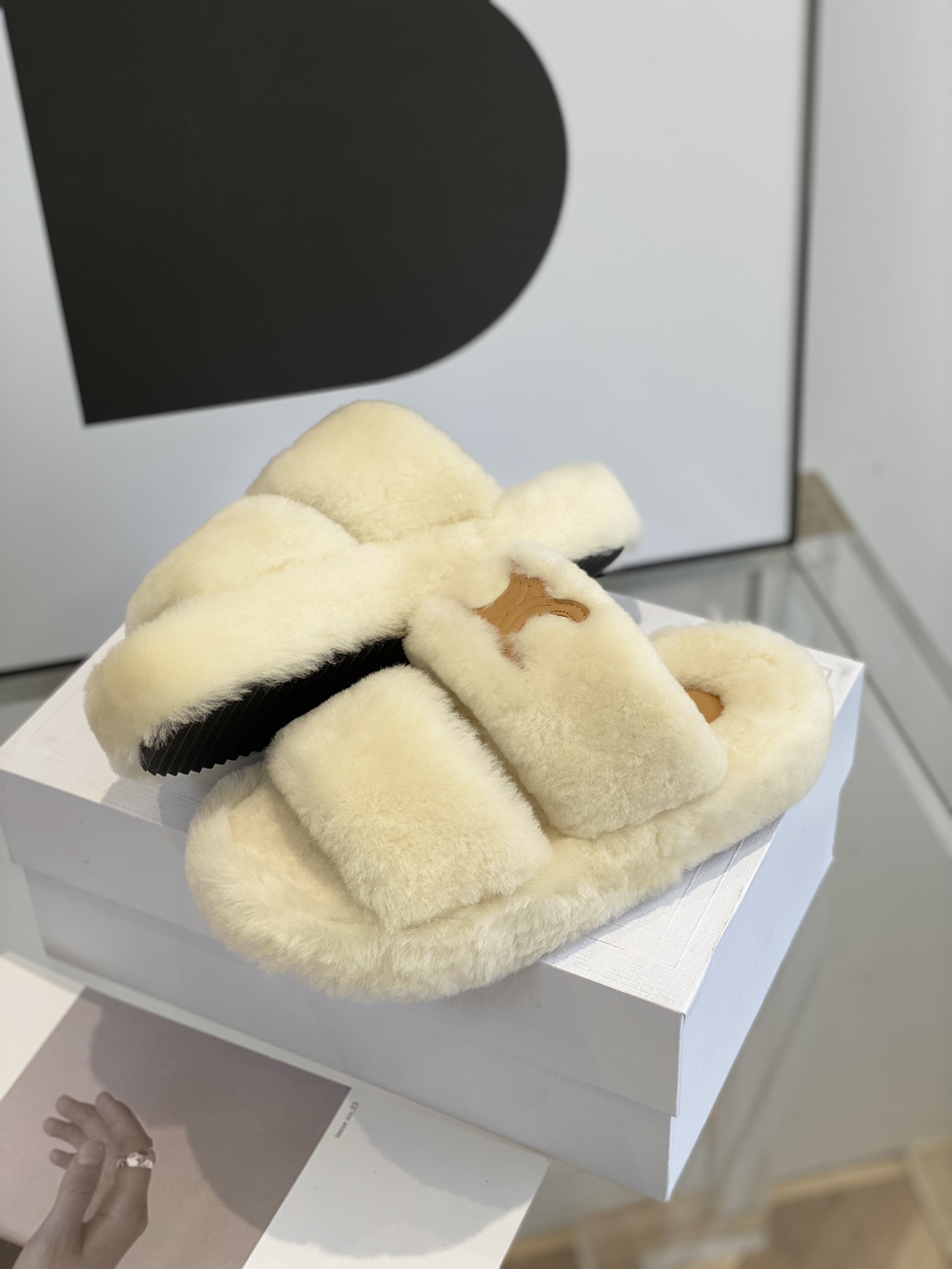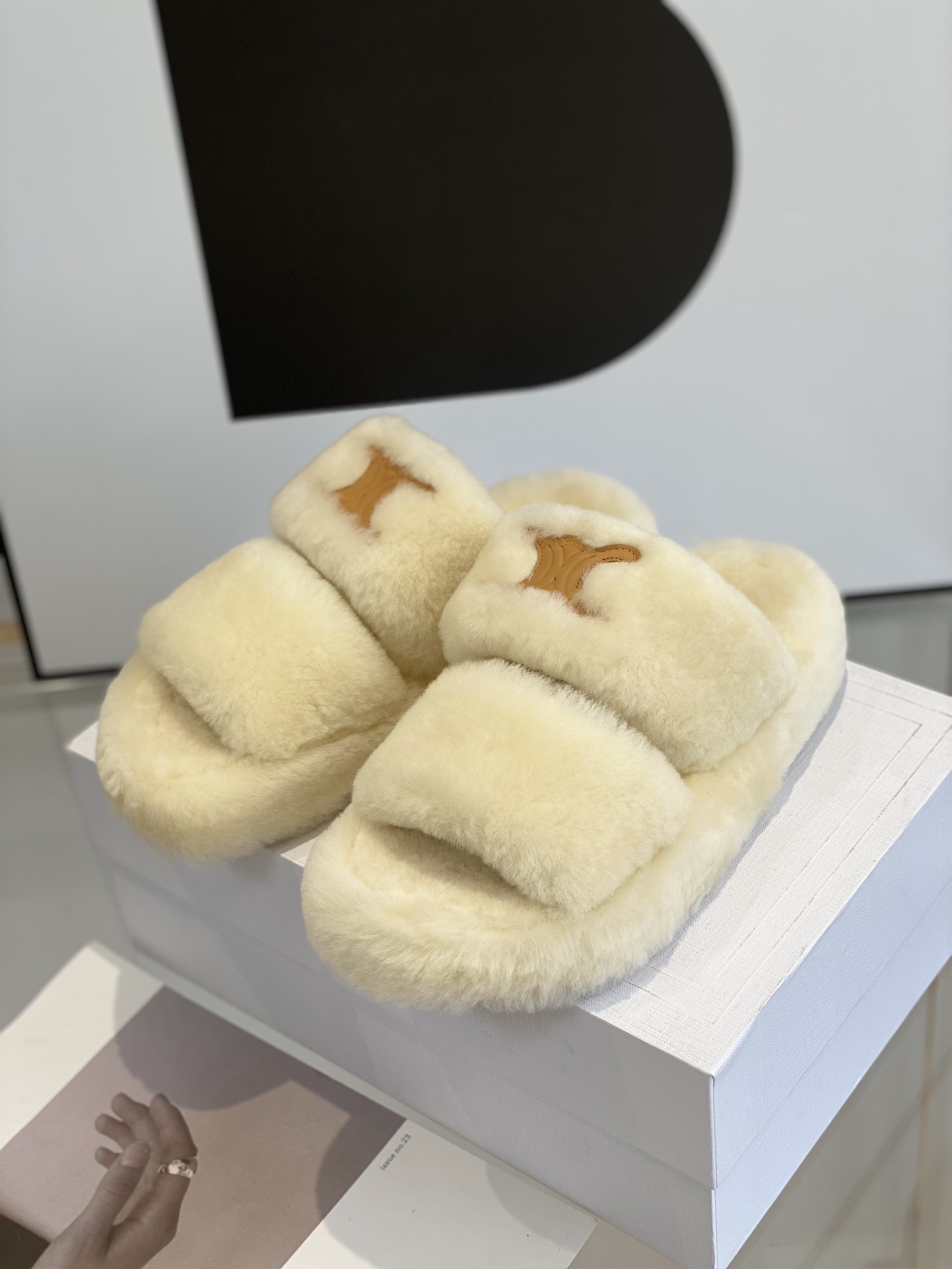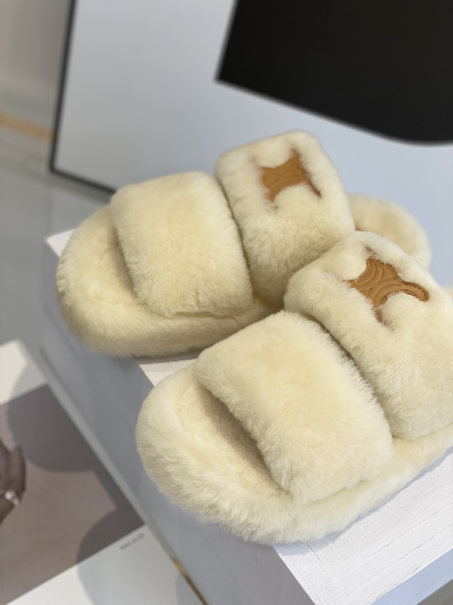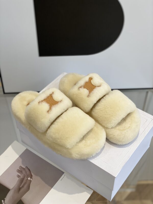 Celine classic wool slippersSelected cut cake hair material, cloud-like care, thick bottom design, good heightening effect.
