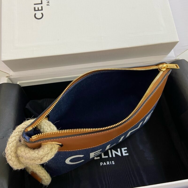 Клатч также выполнен из джинсовой ткани с ручками-тросами