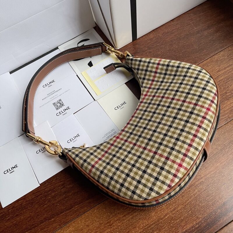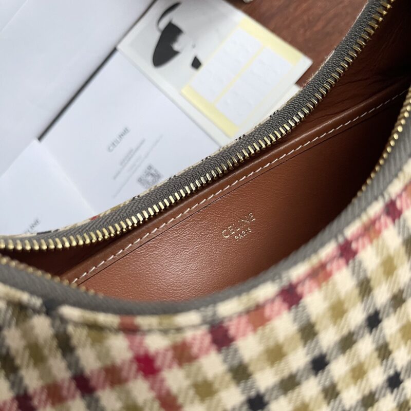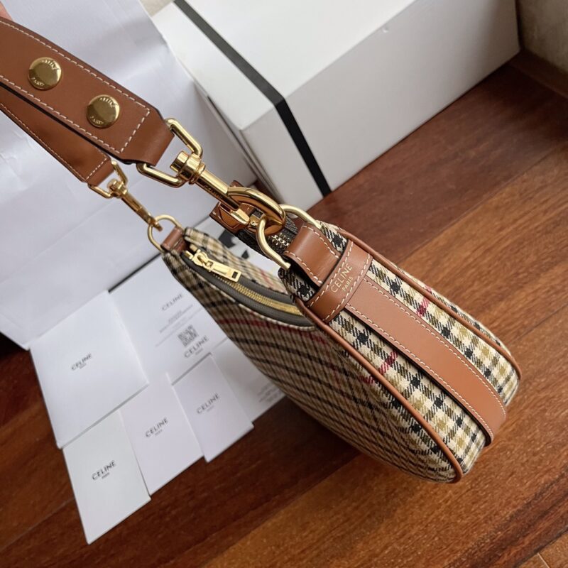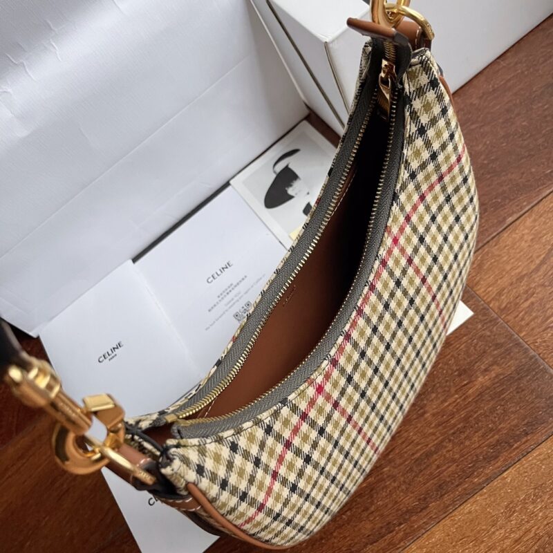 Fall/Winter 2021 Ava Strap handbag Textile overlay cowhide and sheepskin lining. Shoulder or hand zip closure 1 main compartment 1 flat pocket, adjustable and detachable leather shoulder strap with hook and snap closure. Length 24 cm. Longest 37 cm. Style number: 196923 Plaid size: 25/19/7