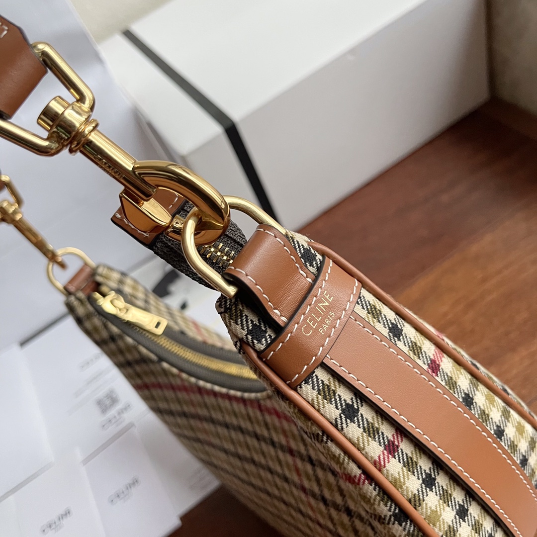 Fall/Winter 2021 Ava Strap handbag Textile overlay cowhide and sheepskin lining. Shoulder or hand zip closure 1 main compartment 1 flat pocket, adjustable and detachable leather shoulder strap with hook and snap closure. Length 24 cm. Longest 37 cm. Style number: 196923 Plaid size: 25/19/7