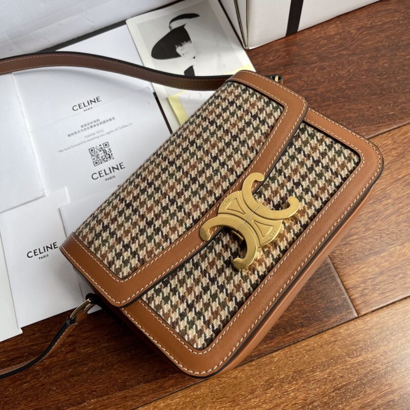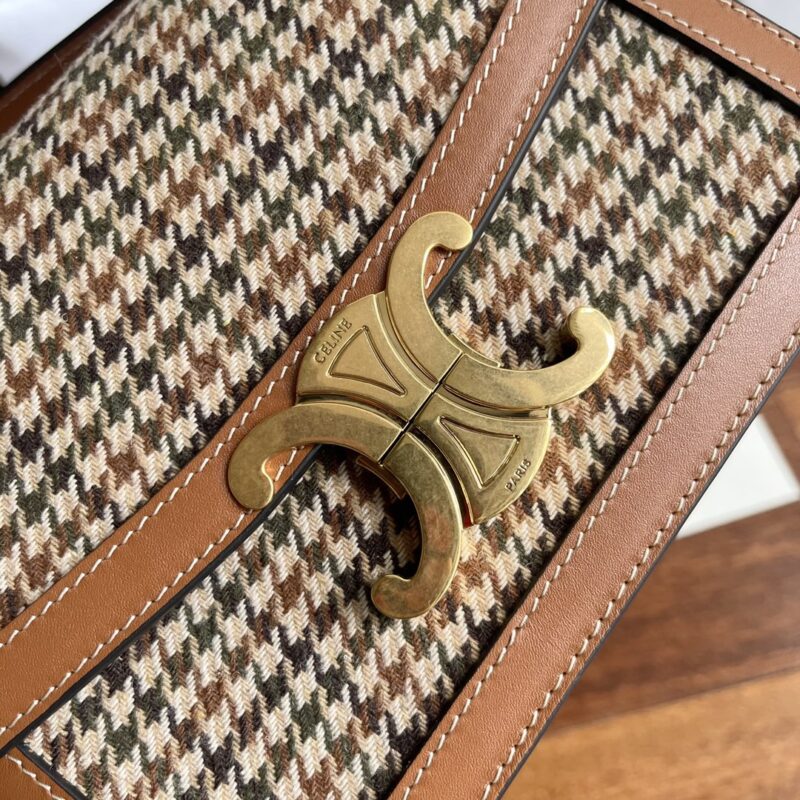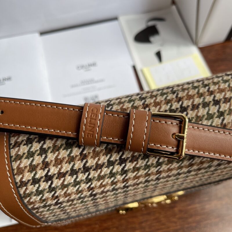 Celine Triomphe Teen Box with Houndstooth Pattern Leather Autumn and winter plaid and cowhide with inner sheepskin. Low-key and high-end retro. Logo is quite exquisite. Can be carried on the shoulder/crossbody/hand, with adjustable shoulder strap. Especially suitable for daily casual wear size: 18.5cm