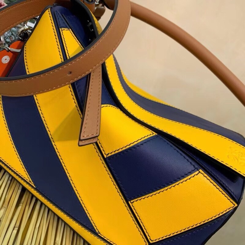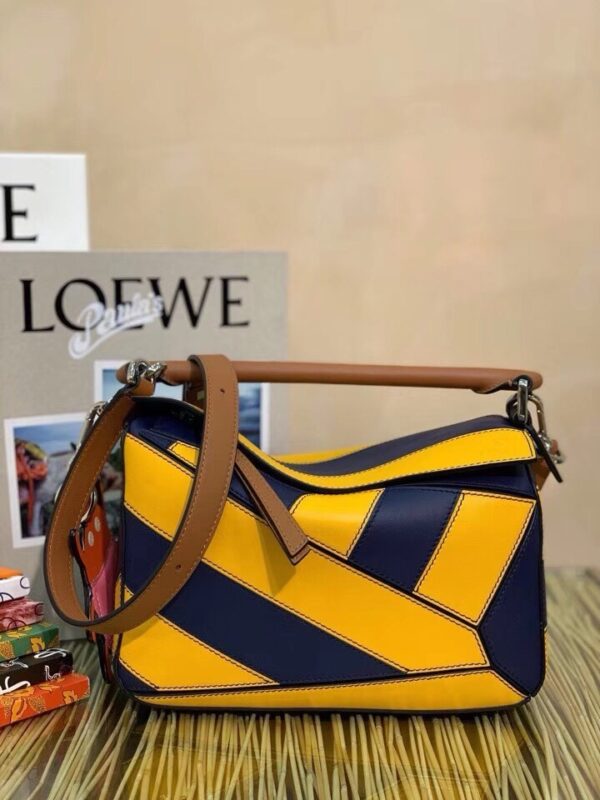 Новая сумка-пазл от Loewe, маленькая, в полоску и с цветными блоками. На прилавке есть только один размер, маленький, 24 см. Маленькая геометрическая сумка небольшого размера, но в нее можно положить много вещей! Изготовленная по индивидуальному заказу телячья кожа очень удобна и легко мнётся. Поставляется с полным набором оригинальной упаковки. Маленький размер: 24x10x14 см.(2024)