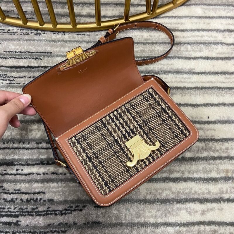 Узнаваемый узор «гусиные лапки» сочетается с коричневой телячьей кожей. Селин, известная своим крутым стилем, на этот раз приобрела неожиданную красоту. Модель имеет сильный ретро-стиль, но при этом полна жизненной силы.