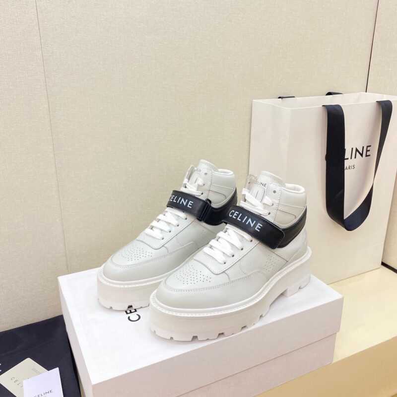 CELINE high-top Velcro sneakersThe leather upper is very easy to take care of. The Velcro on the front is also unique. The LOGO on the side and the heel makes him simple and not out of balance. Upper calfskin stitched calf suede. Breathable mesh lining Size: 35-40 (40 customized)