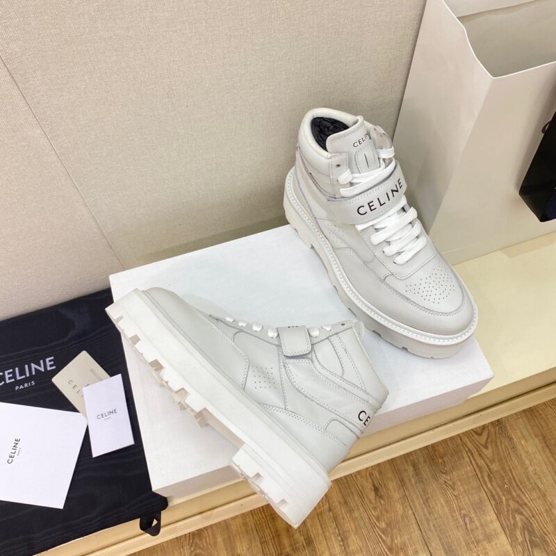 Celine high-top Velcro sneakers The leather upper is very easy to take care of. The Velcro on the front is also unique. The LOGO on the side and the heel makes him simple and not out of balance. Upper calfskin stitched calf suede. Breathable mesh lining Size: 35-40 (40 customized)