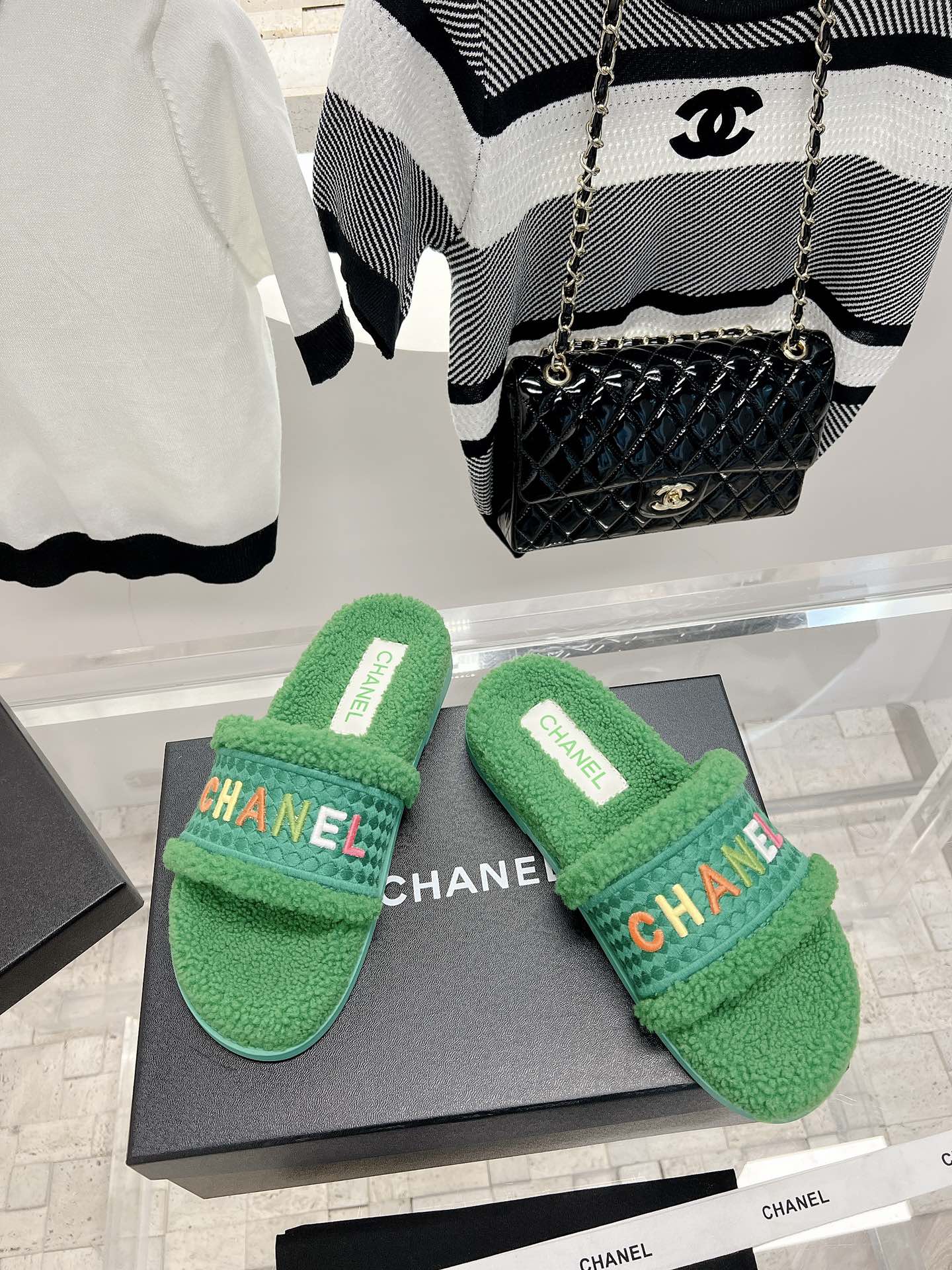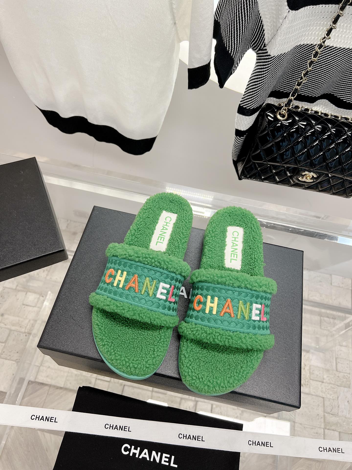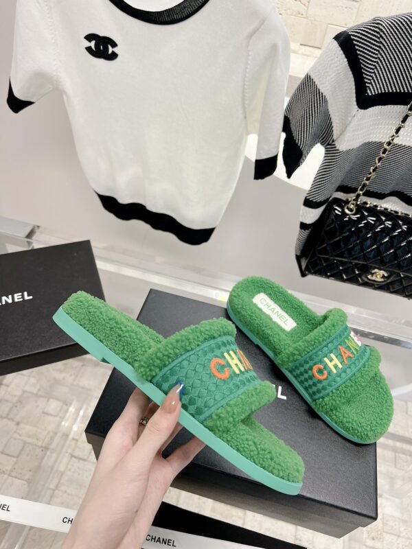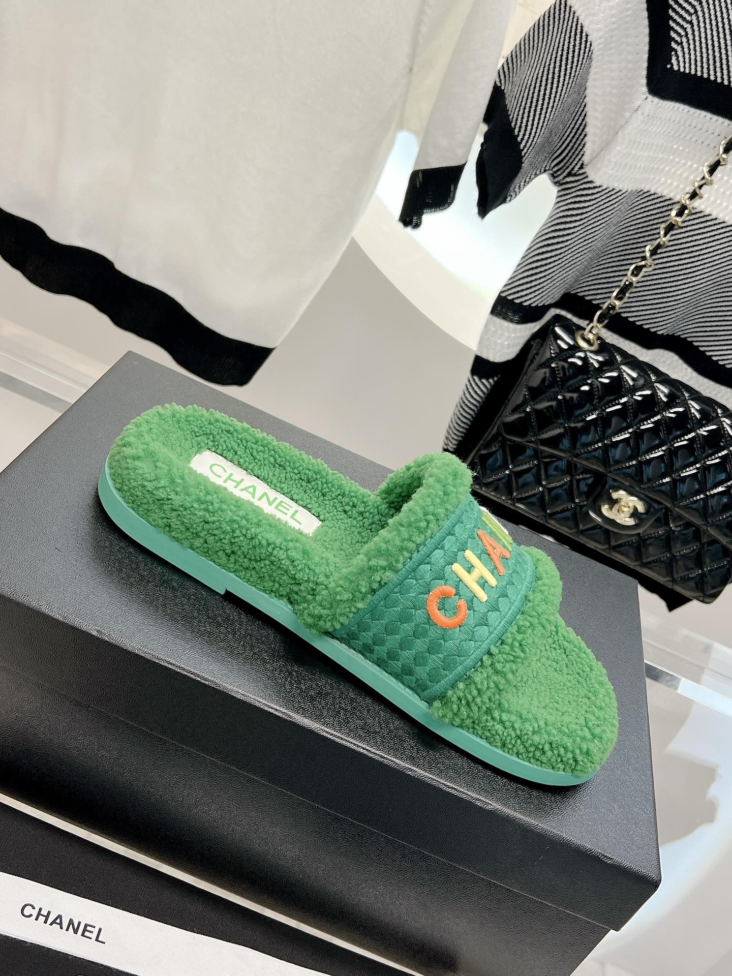 𝗖𝗛𝗔𝗡𝗘𝗟 Highest quality lamb wool slippers The latest exclusive series, full marks for appearance and comfort 💯Letter Logo embroidery technology, simple and elegant, full of exquisiteness, suitable for ladies! Selected high-quality materials, delicate and with a sense of luster 👏👏 Original high-density melamine outsole Size 35-39 [40/41 customized]