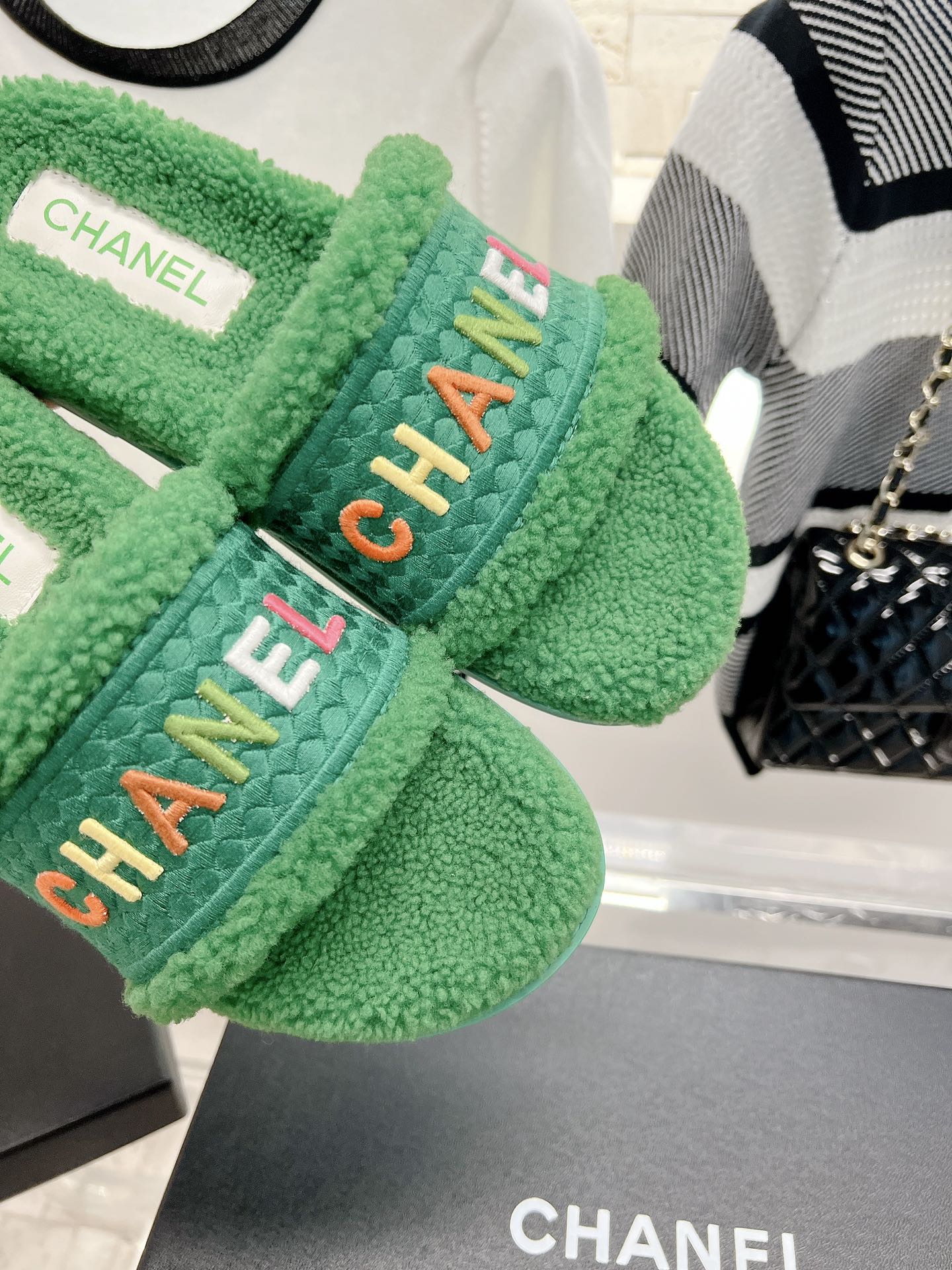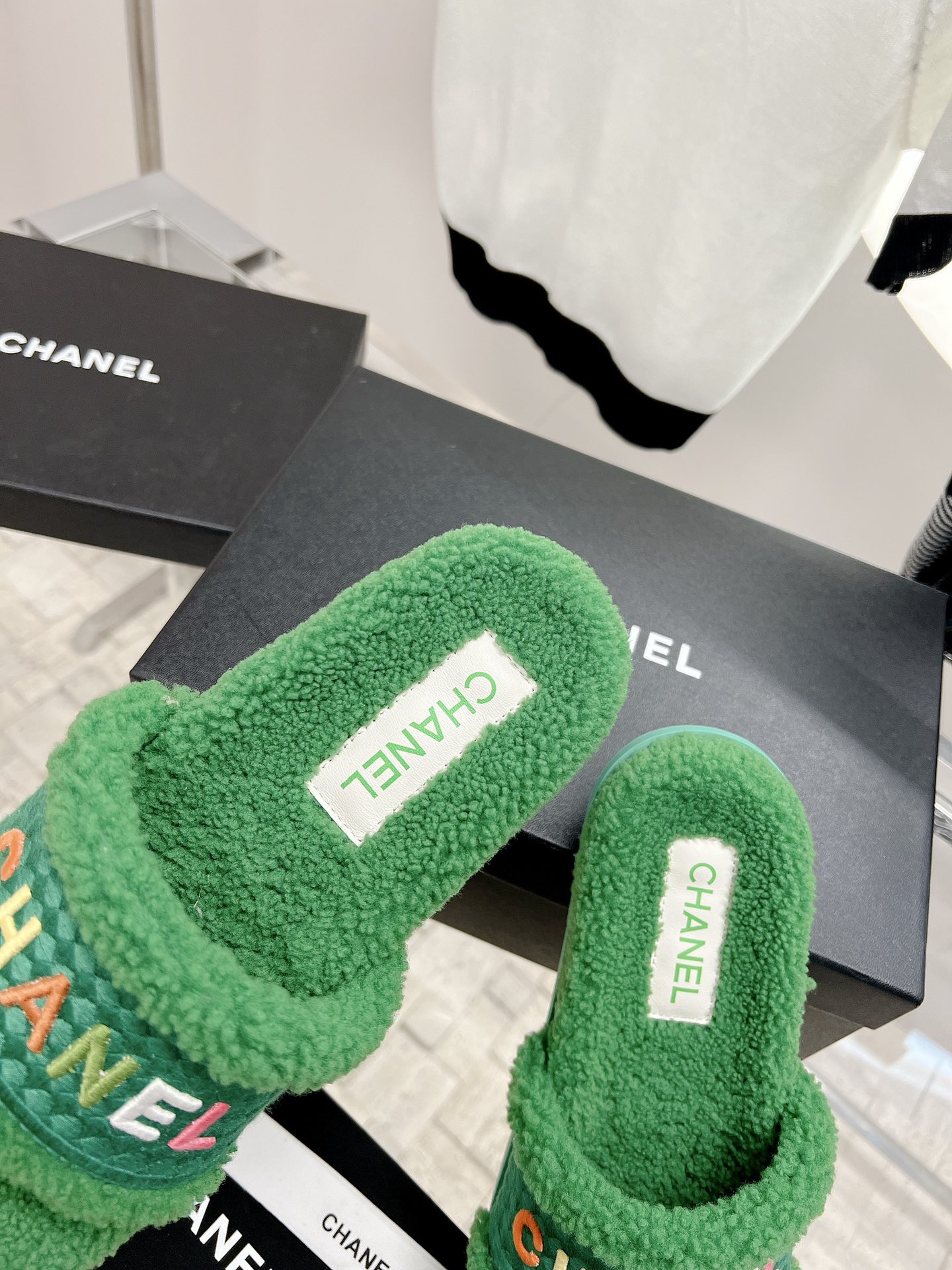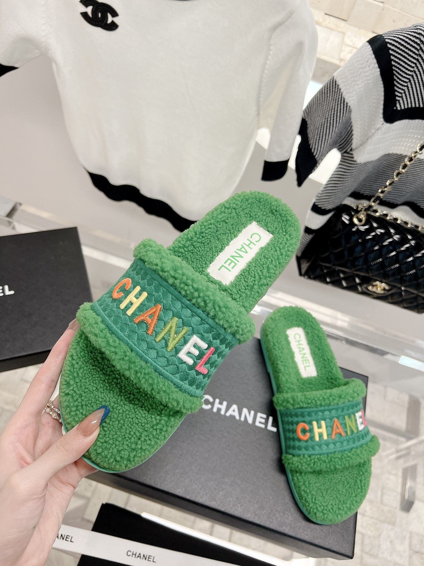 𝗖𝗛𝗔𝗡𝗘𝗟 Highest quality lamb wool slippers The latest exclusive series, full marks for appearance and comfort 💯Letter Logo embroidery technology, simple and elegant, full of exquisiteness, suitable for ladies! Selected high-quality materials, delicate and with a sense of luster 👏👏 Original high-density melamine outsole Size 35-39 [40/41 customized]
