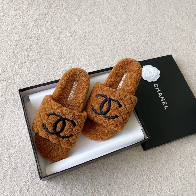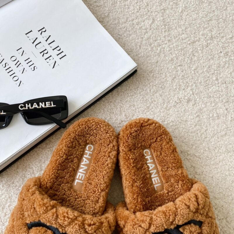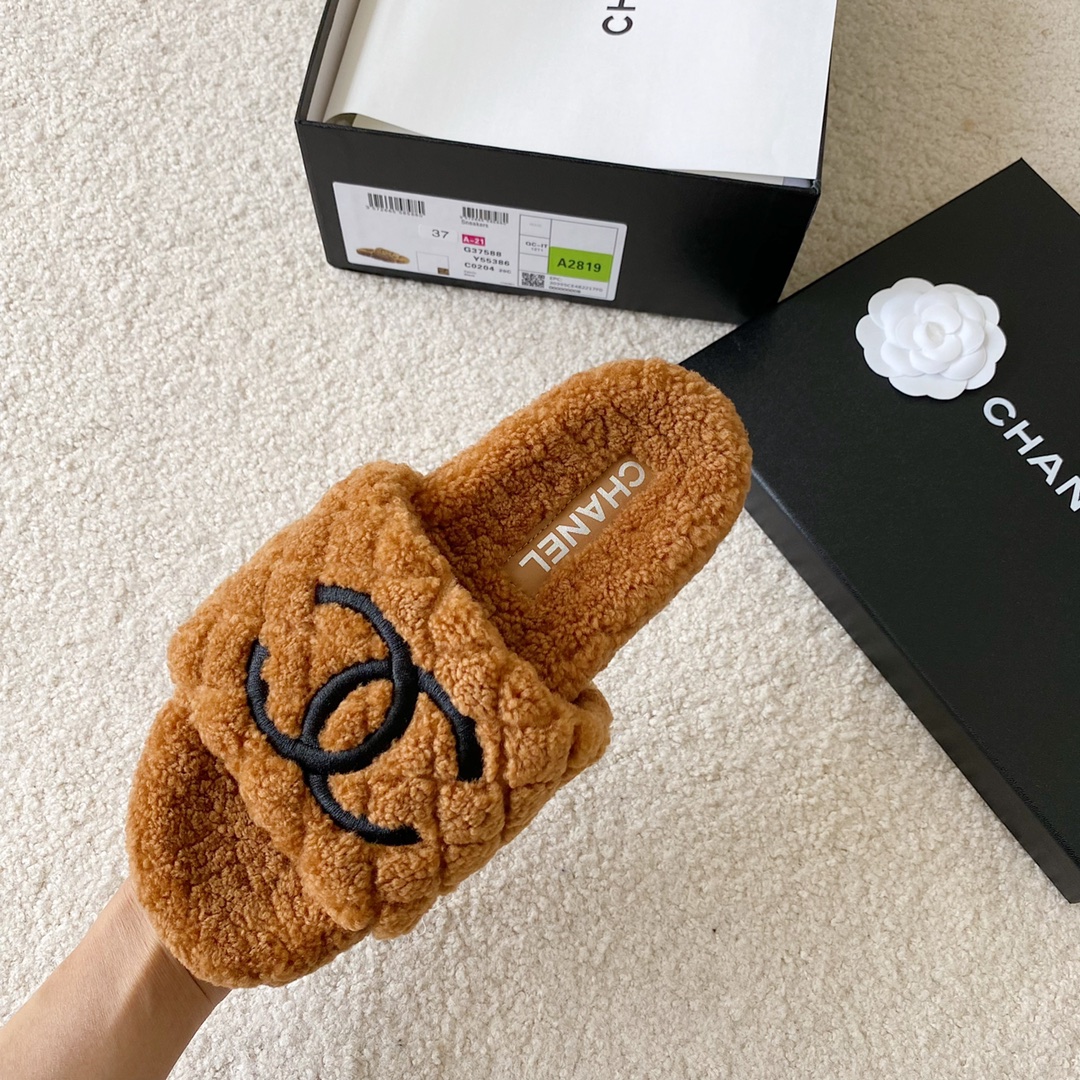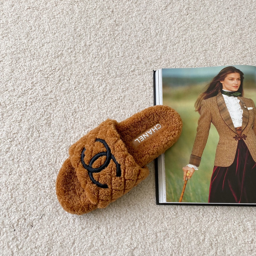 𝗖𝗛𝗔𝗡𝗘𝗟Autumn/Winter New Argyle Second-hand Hair Drag The shoe upper is embellished with fabric electric embroidery color logo, which is exquisitely presented~ Comfortable and elegant means full of visual sense ~ lady-level fashion items! Lamb curl fabric, original rubber outsole Top quality 35-40