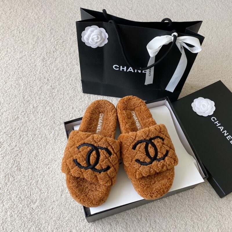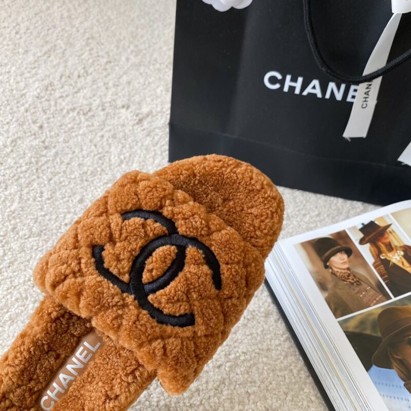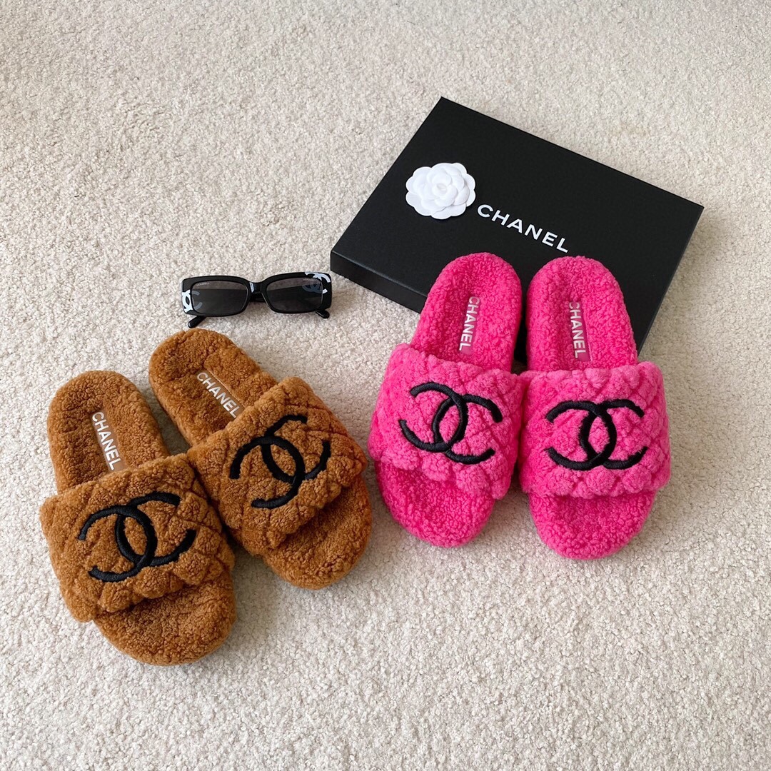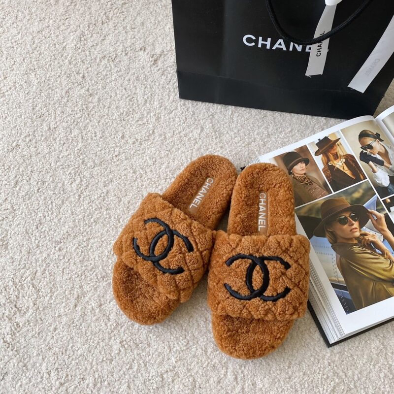 𝗖𝗛𝗔𝗡𝗘𝗟Autumn/Winter New Argyle Second-hand Hair Drag The shoe upper is embellished with fabric electric embroidery color logo, which is exquisitely presented~ Comfortable and elegant means full of visual sense ~ lady-level fashion items! Lamb curl fabric, original rubber outsole Top quality 35-40