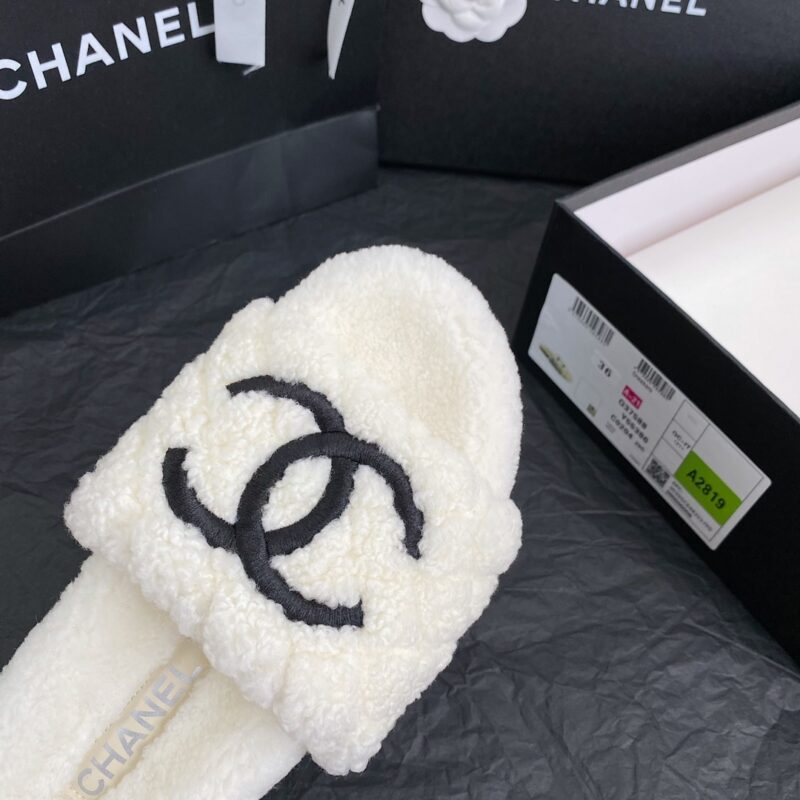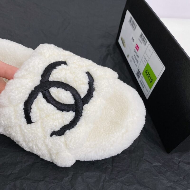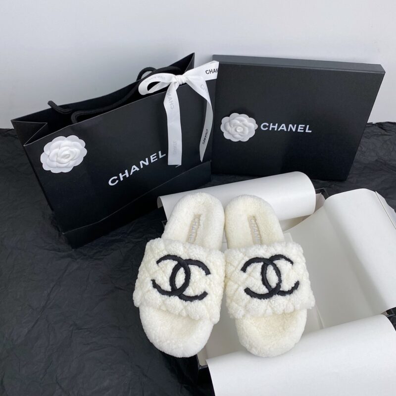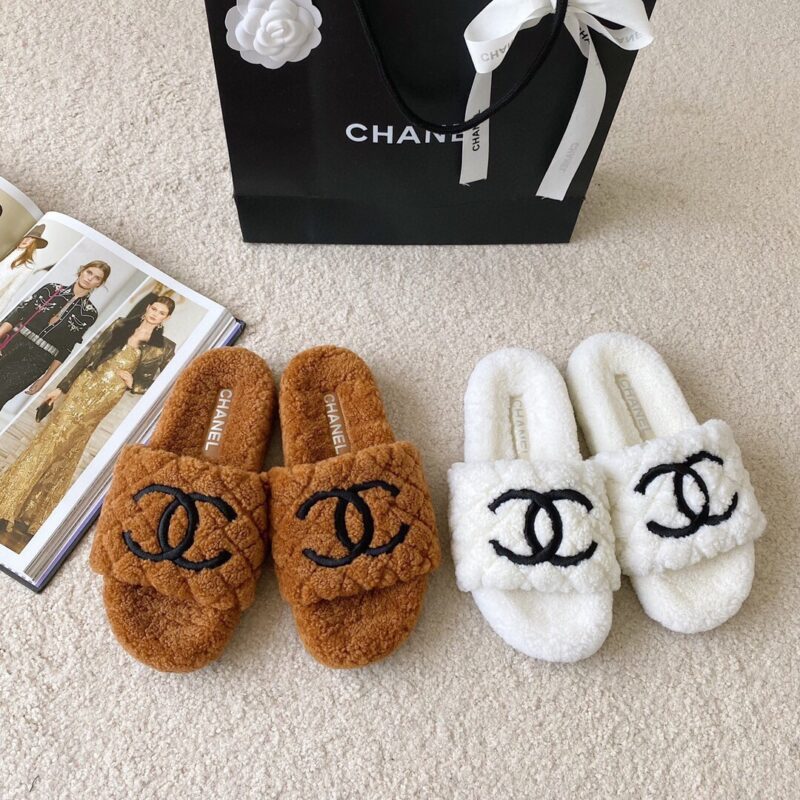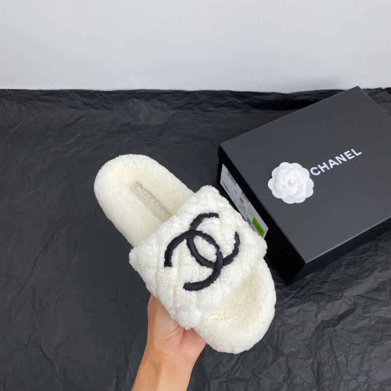 𝗖𝗛𝗔𝗡𝗘𝗟Autumn/Winter New Argyle Second-hand Hair Drag The shoe upper is embellished with fabric electric embroidery color logo, which is exquisitely presented~ Comfortable and elegant means full of visual sense ~ lady-level fashion items! Lamb curl fabric, original rubber outsole Top quality 35-40