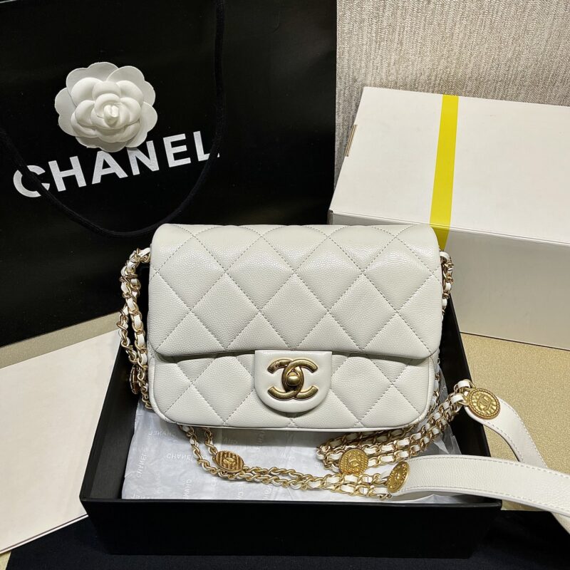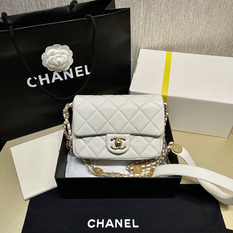 ✨New in stock✨2022 early autumn new advanced handmade workshop series baguette gold coin chain bag💕, retro gold coin chain, classic rhombic embroidery, beautiful appearance 🈵️❤️, lychee pattern 🇫🇷 calf leather is durable and beautiful, once you see it I can’t help but start, Fa Cai Bao woc, mini woc, Fang Fatzi four sizes, deeply planted 🍀💗 Size: 21X14.5X6cm