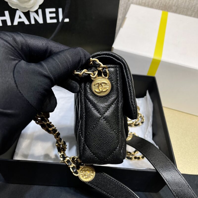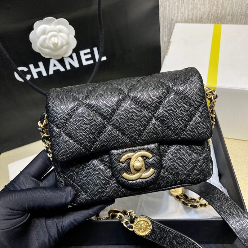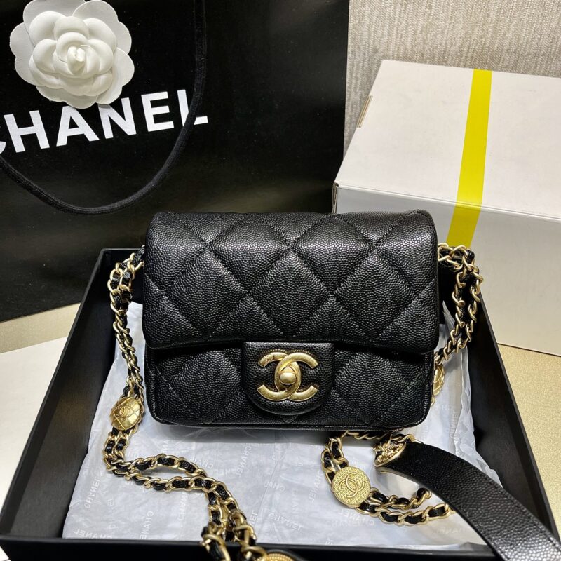 ✨New in stock✨2022 early autumn new advanced handcraft series gold coin chain Fang Fatty💕, retro gold coin chain, classic rhombic embroidery, beautiful appearance 🈵️❤️, lychee pattern 🇫🇷 calf leather is durable and beautiful, you can bear it when you see it Can’t help but start, there are four sizes of fortune bag woc, mini woc, baguette bag, deeply planted with grass🍀 Size: 17X13X5.5cm