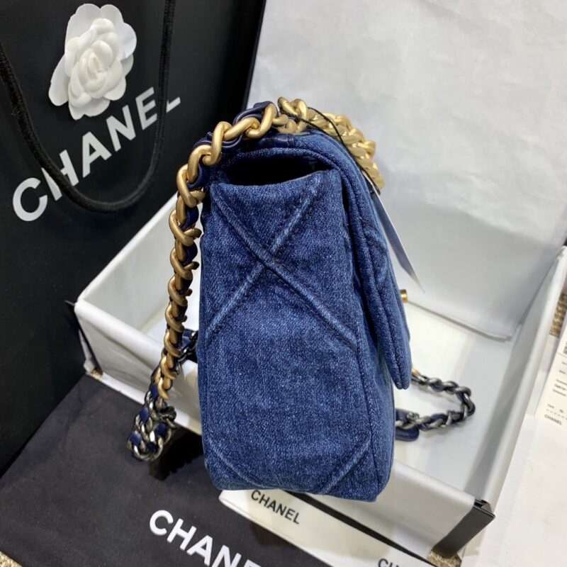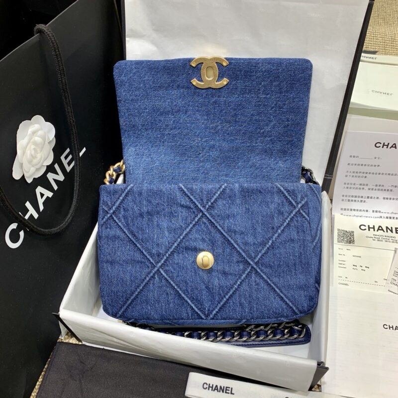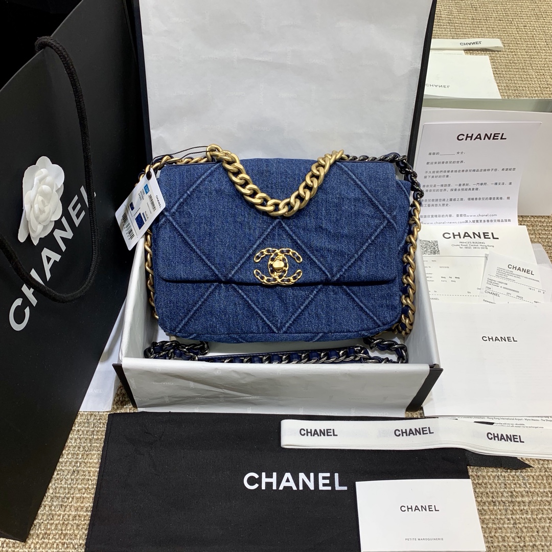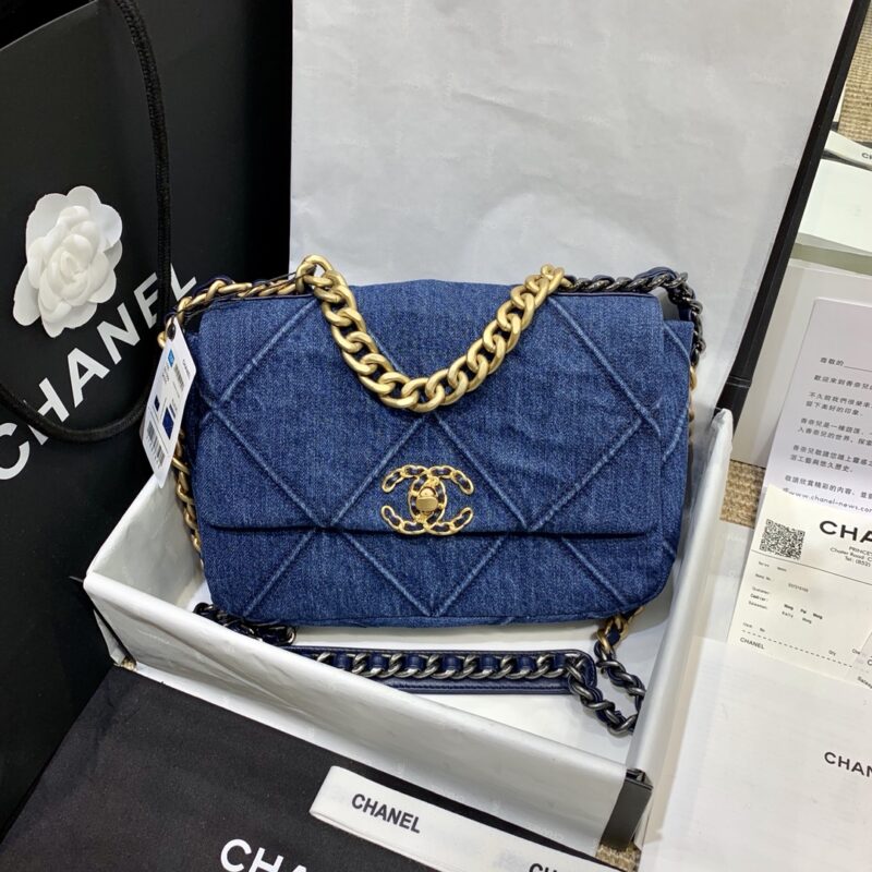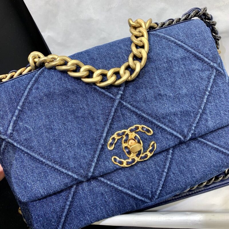 ✨CH 19 denim series 🤗2020 spring and summer new double C chain design 💓Neutral feeling is very convenient for dual use and also uses the gold and silver chain design of the homeless bag🌟 The super punctual denim blue is casual and versatile, which is different from the leather version of 19Bag The material of denim is light and wear-resistant and stain-resistant, super super easy to care for and store. No more nonsense, I am your devil today👹, buy her for me! ! ! No one will regret it! ! ! The upper body is also very nice 💕Size: 26Cm