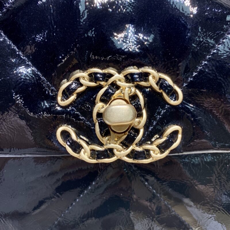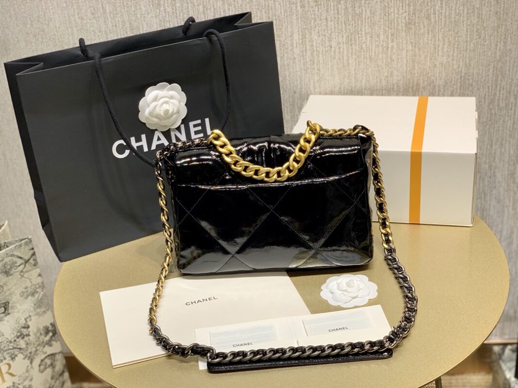 ✨CH 19 series 🤗20 autumn/winter latest model Patent leather double C chain design 💓Neutral feeling, dual use is very convenient, also used the gold and silver chain design of the homeless bag 🌟The leather feels retro and old, soft to the touch, and the upper body is also beautiful💕Size: 26Cm
