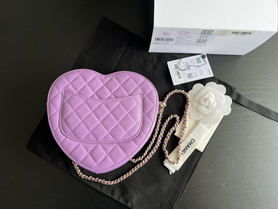 A small amount of purple (shipment) new products Love bag lambskin light gold hardware can hold iphone 13pro max Size: 18x17x5cm (large size)
