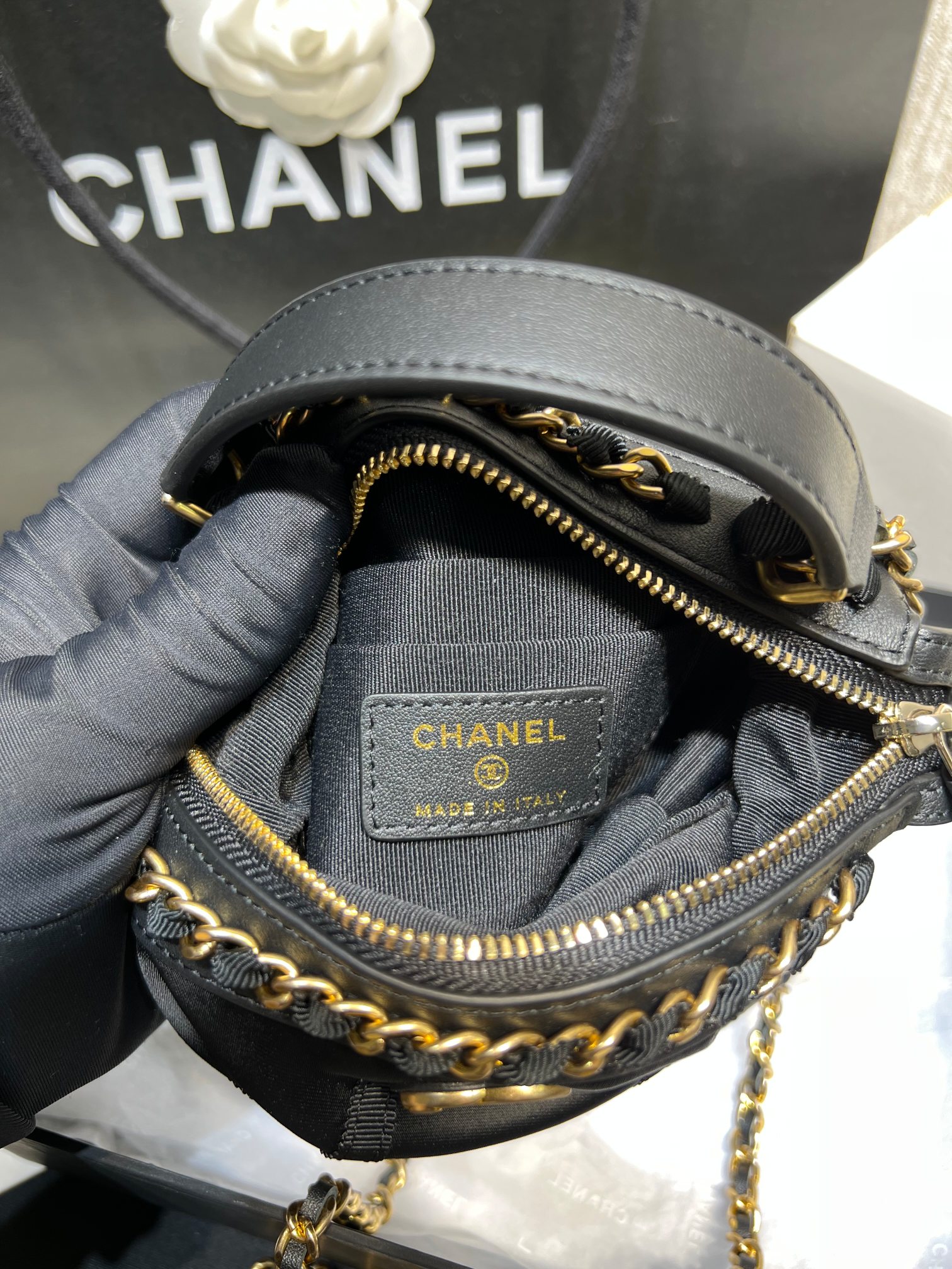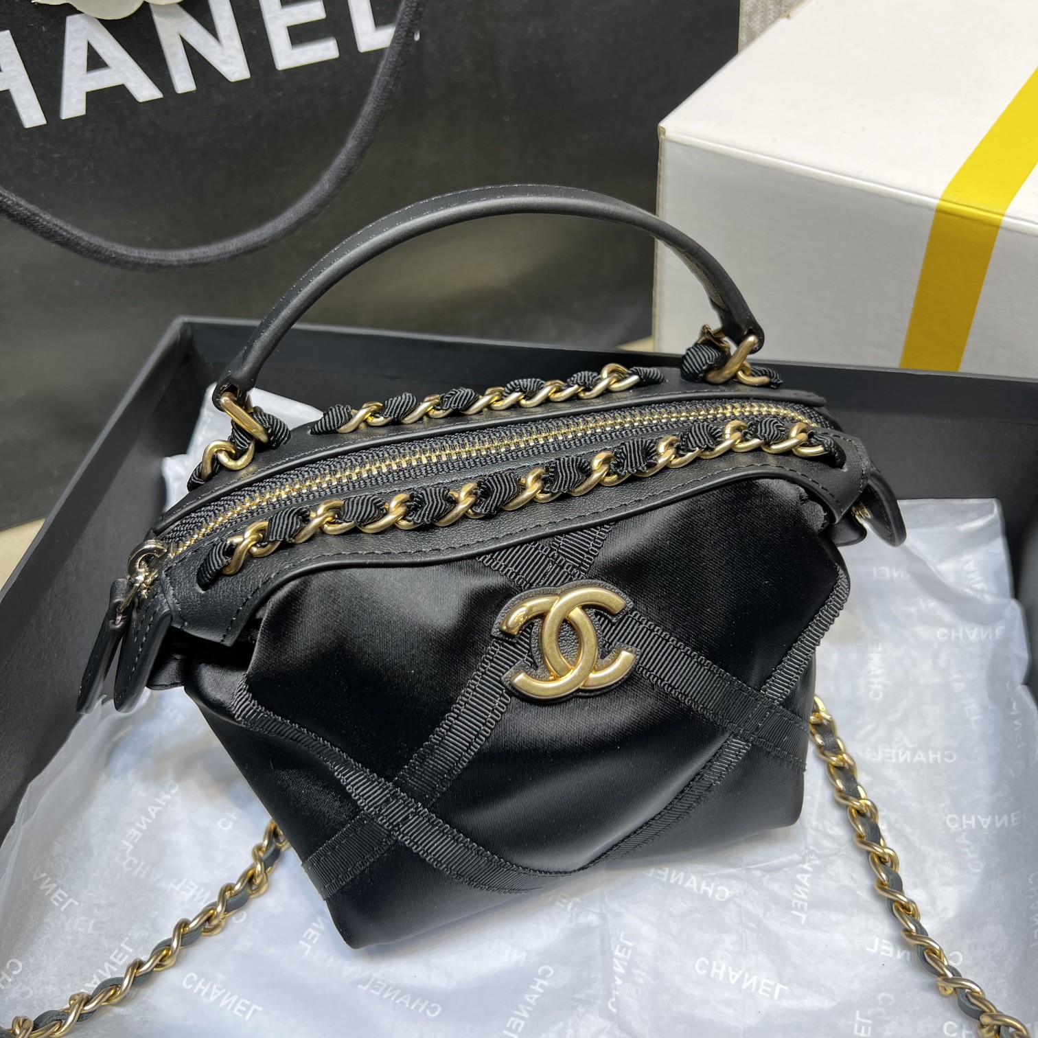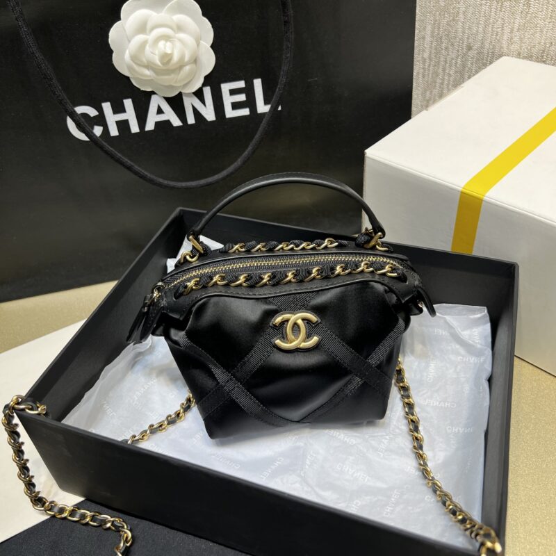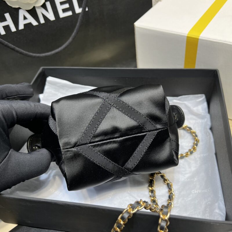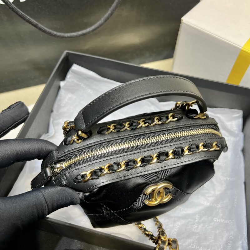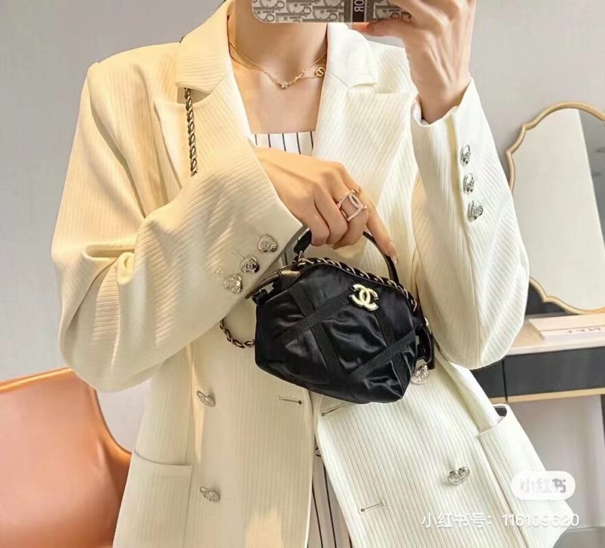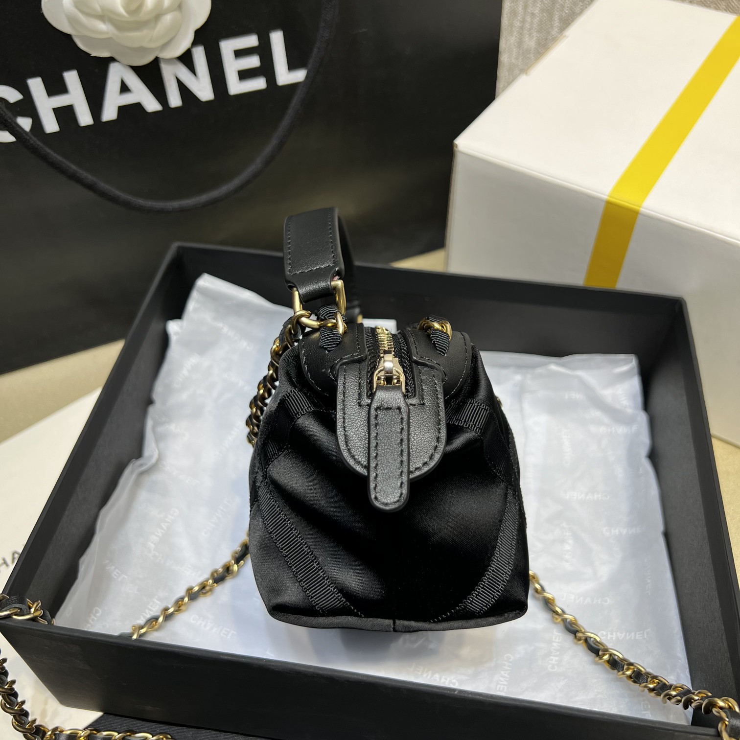 Chanel2022 spring and summer new AP nylon chain clutch bagImported glossy nylon fabric, nylon material is very easy to take care of, very durable. And the classic elements such as rhombus, double C, and leather wear chains have not fallen off. Bag body: the double lines of grosgrain and nylon intersect to form a classic rhombus pattern. Cowhide wrapping. Size: 11×9.5×8cm
