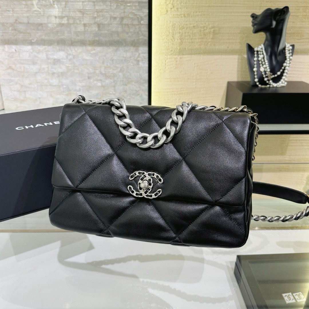 Chanel 19 Bag Black and Silver are cool and versatile, low-key from a distance, stunning when worn! 😍Black sheepskin with silver buckle really dominates the scene, creating a lazy atmosphere, generous and high-end.