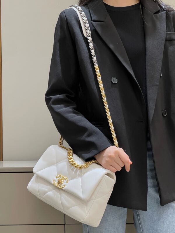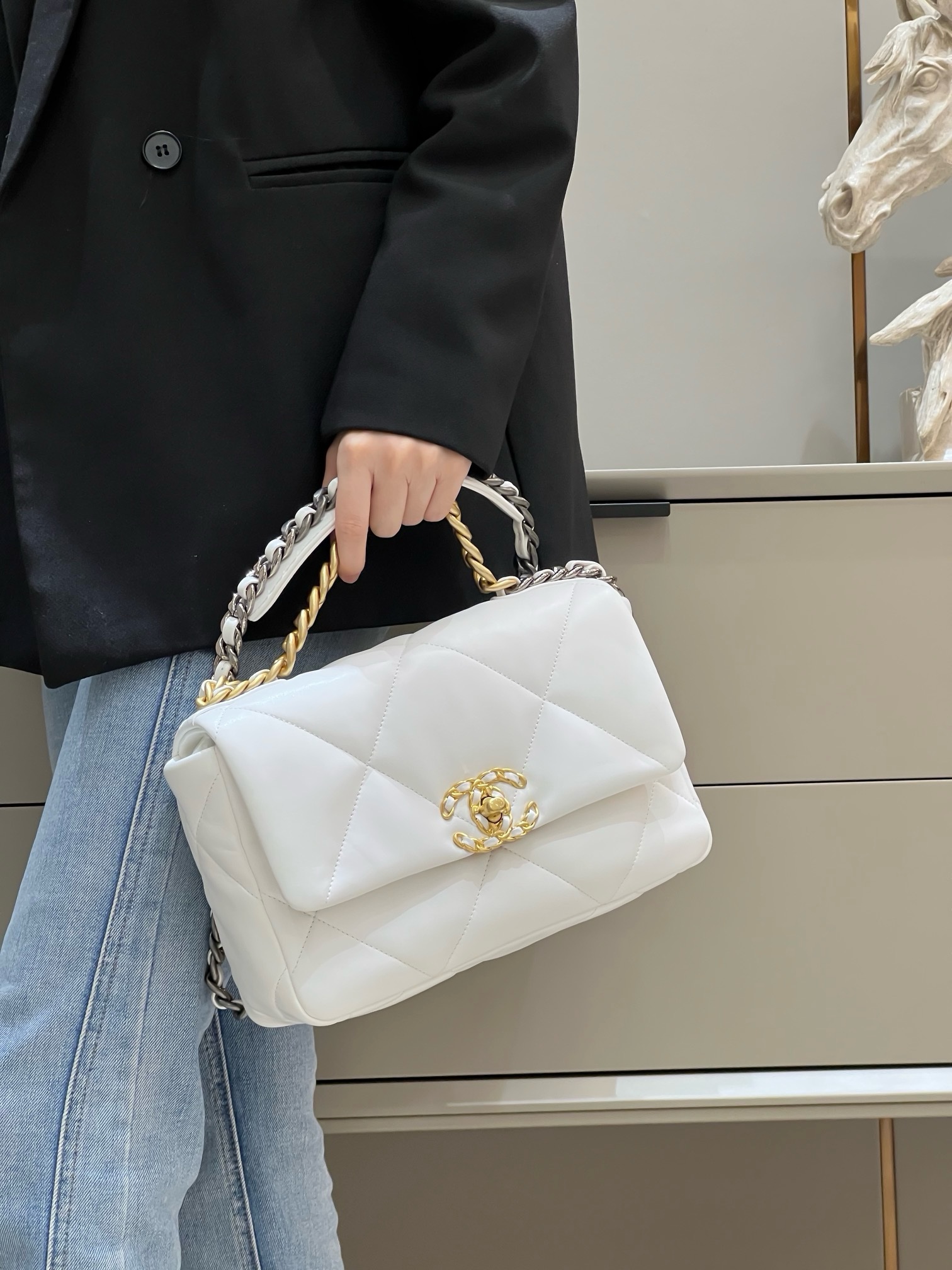/ Chanel 19 Bag White Gold Buckle 26cm