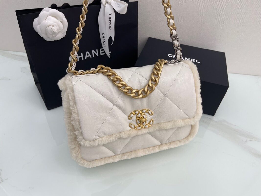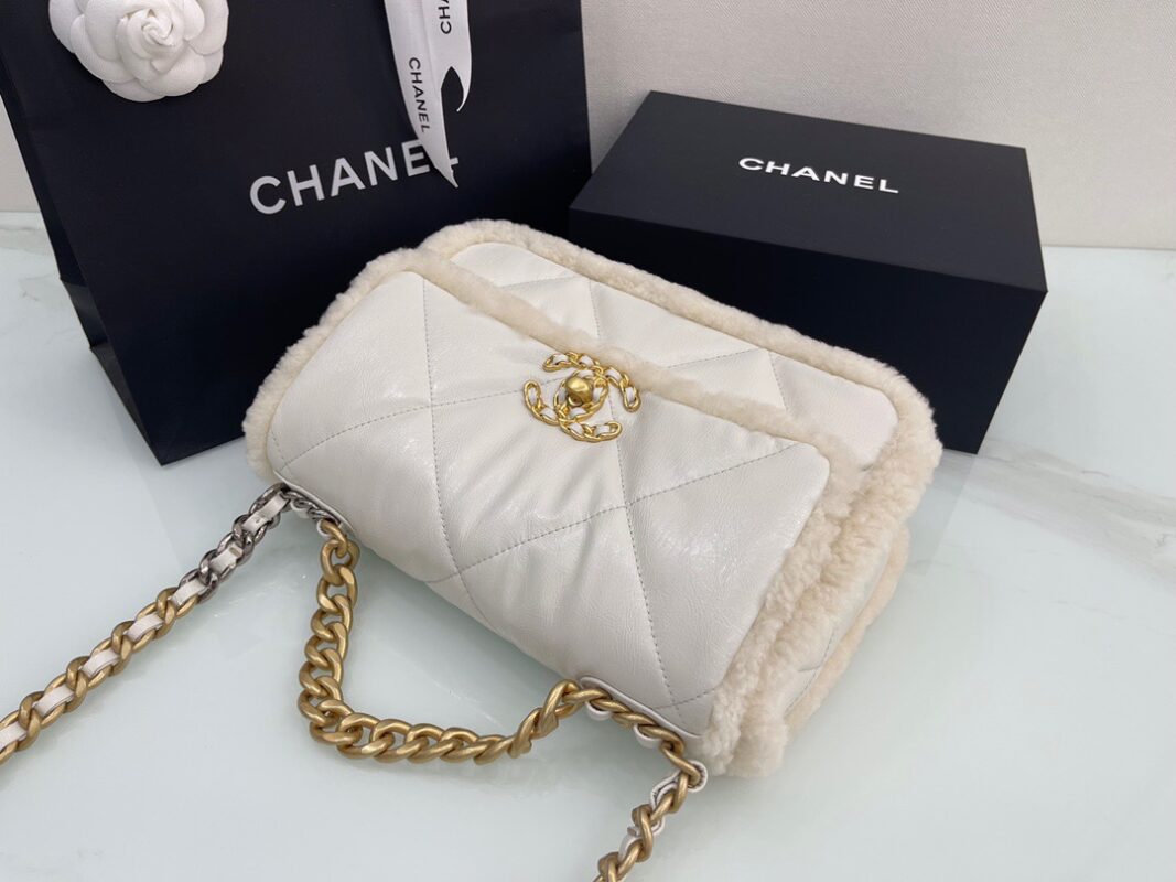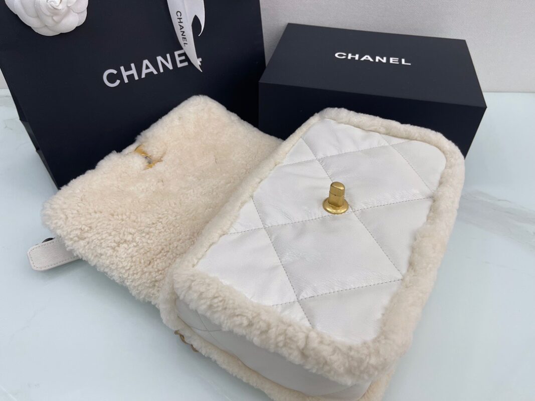 𝘾𝙝𝙖𝙣𝙚𝙡 𝟮𝟭 19Bag Lamb Wool with Oil Wax Skin . Milk White 26cm