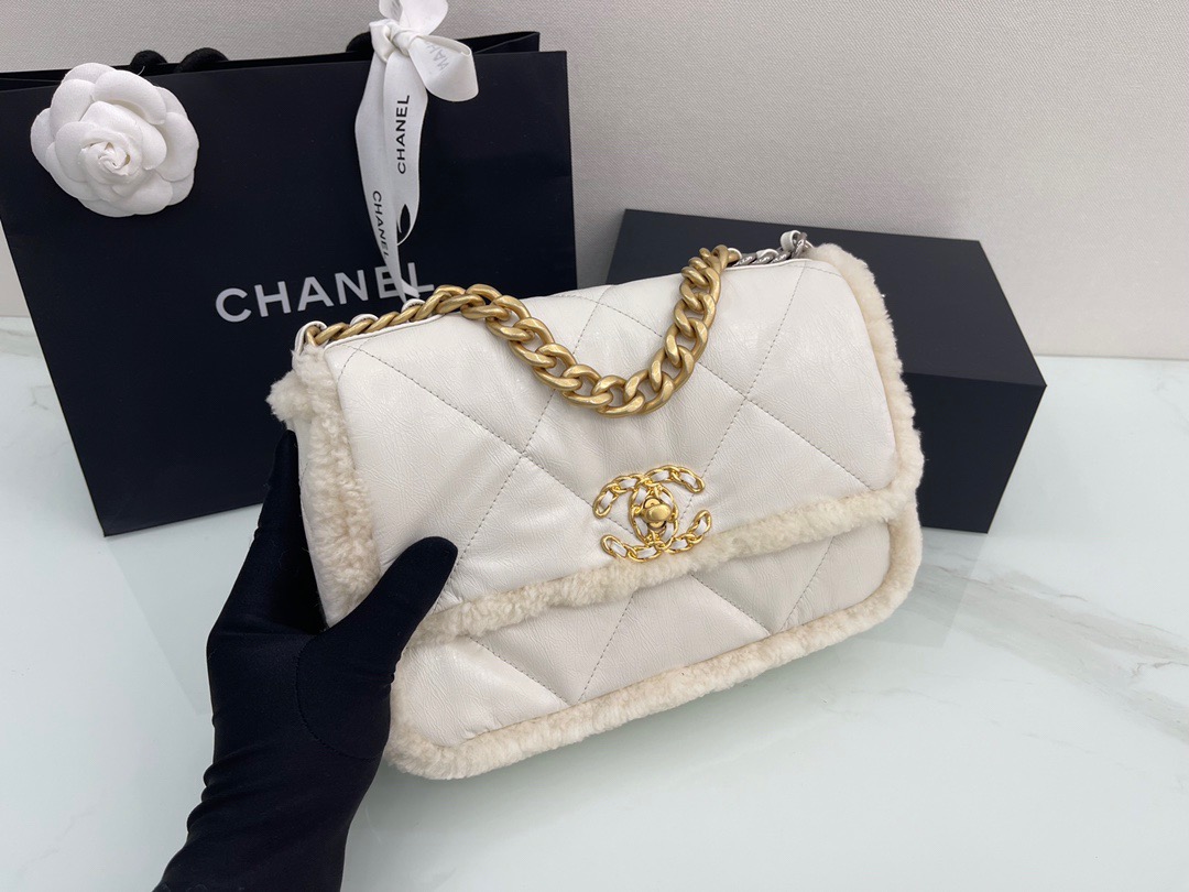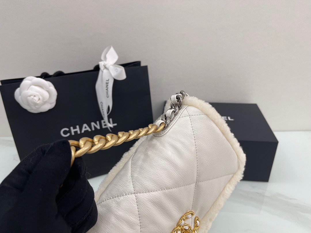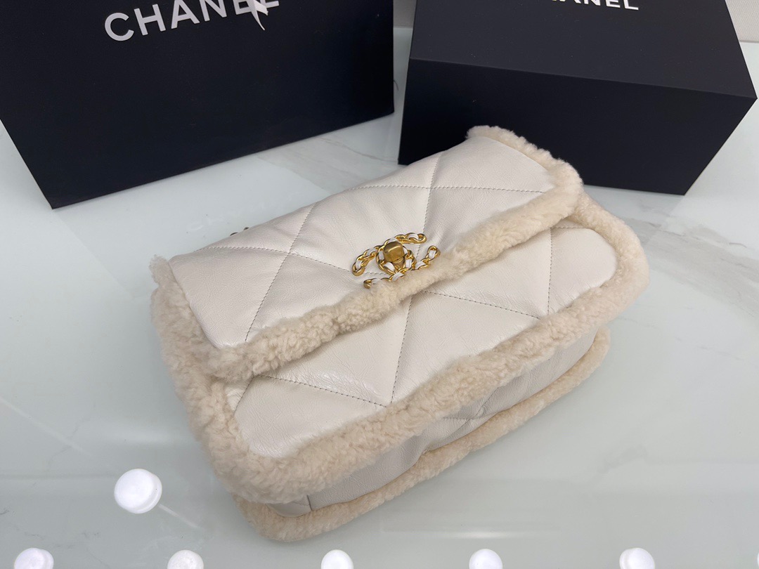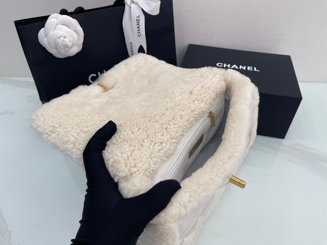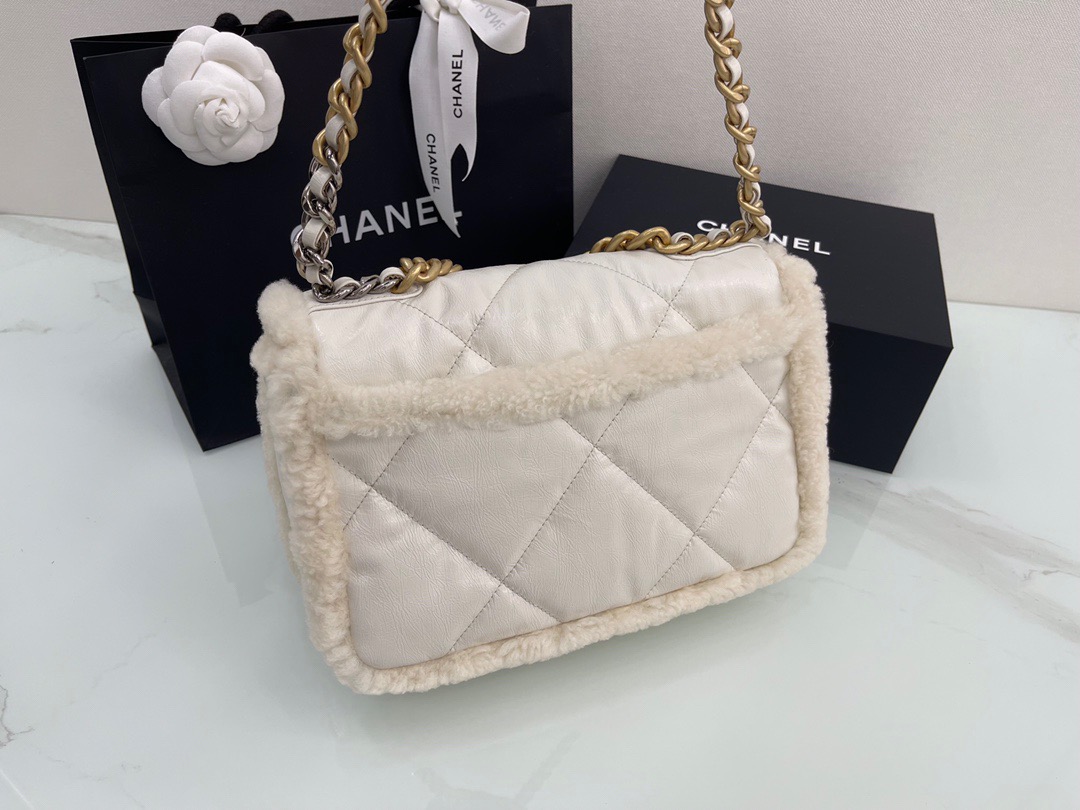 𝘾𝙝𝙖𝙣𝙚𝙡 𝟮𝟭 19Bag Lamb Wool with Oil Wax Skin . Milk White 26cm