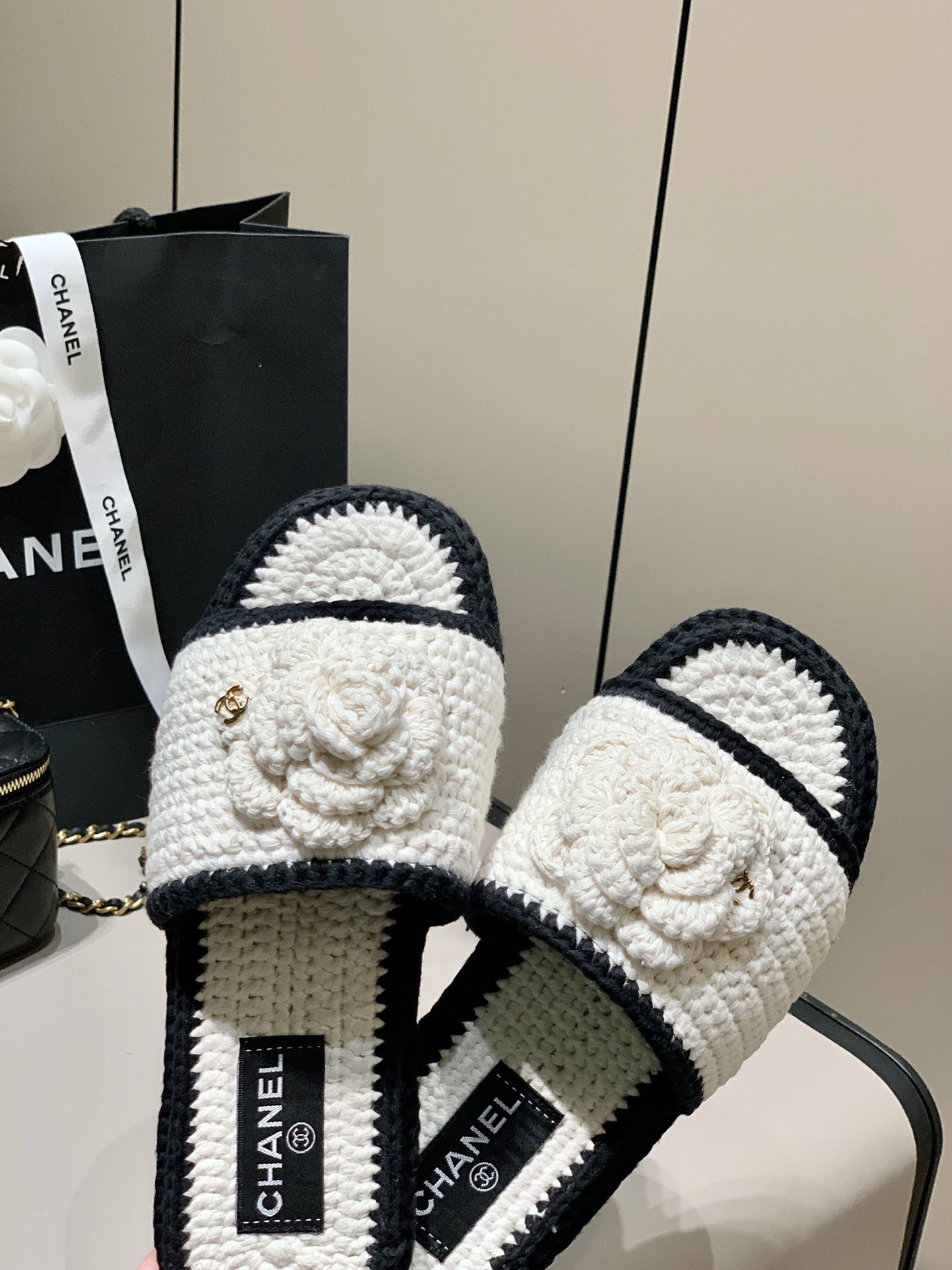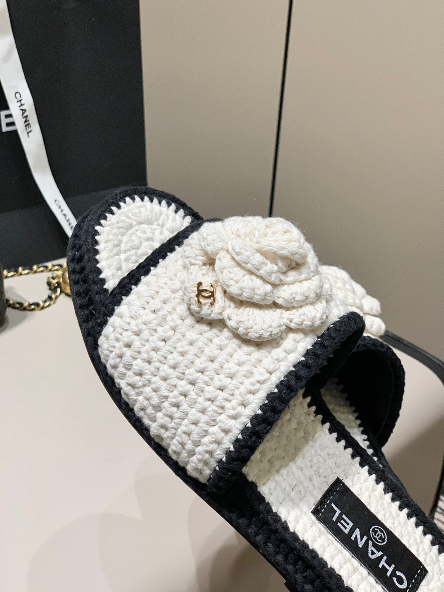The original specific cotton wool knitting of the upper + the exclusive custom-made knitting and crochet craft of camellia, simple lazy drag and versatile style. Italian leather outsole