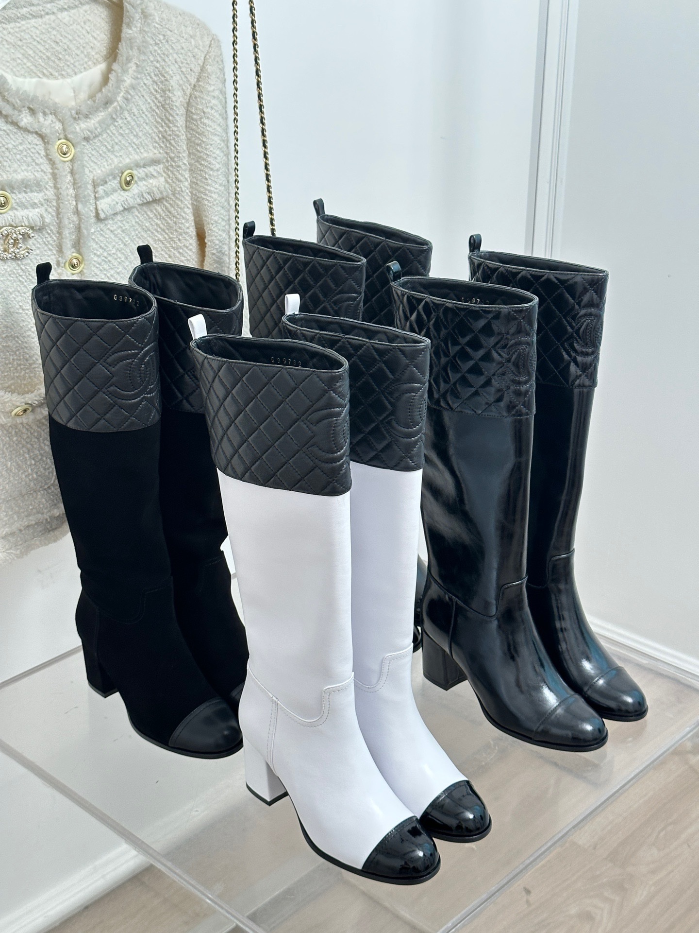 Chanel 2023 Новые ромбические сапоги на массивном каблуке