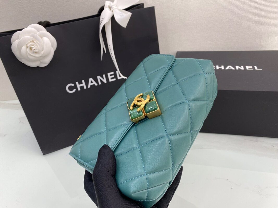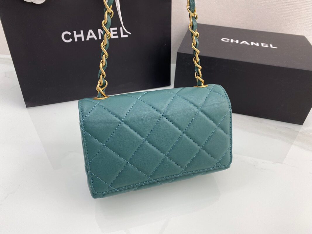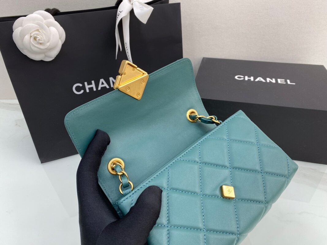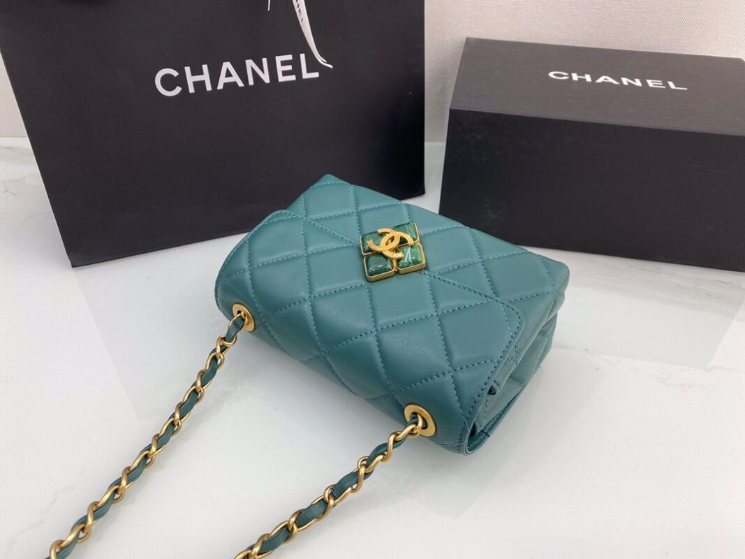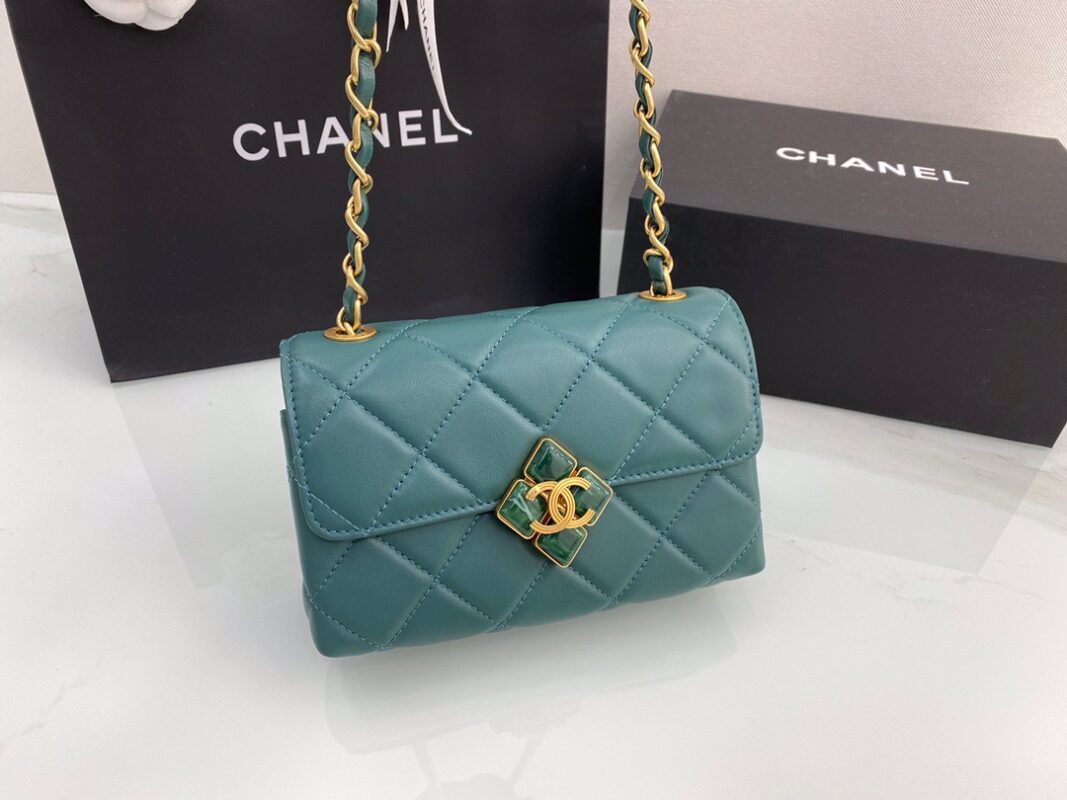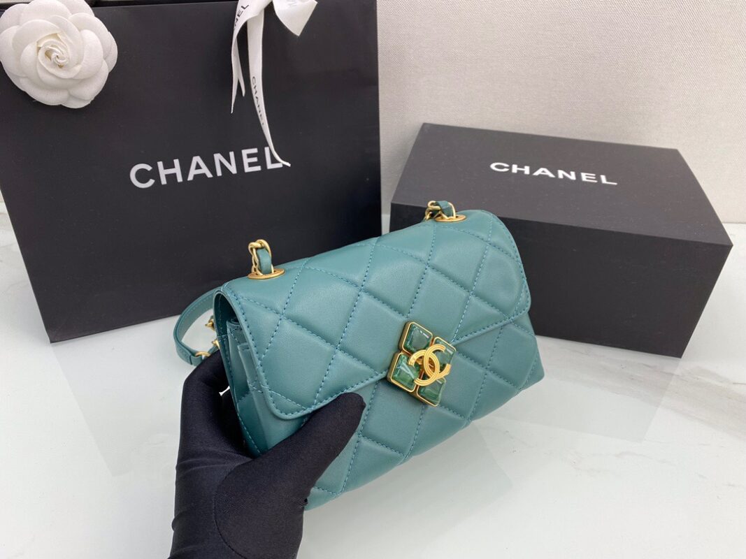𝘾𝙝𝙖𝙣𝙚𝙡 𝟮𝟭 Autumn and Winter Advanced Handicraft Workshop Gem Buckle Chain Flap Bag 18*12*7cm