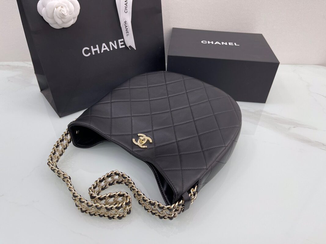 πΎπππ£ππ‘ β’202222P Hippie Bag Hobo armpit bag. Woven wide chain. Lambskin