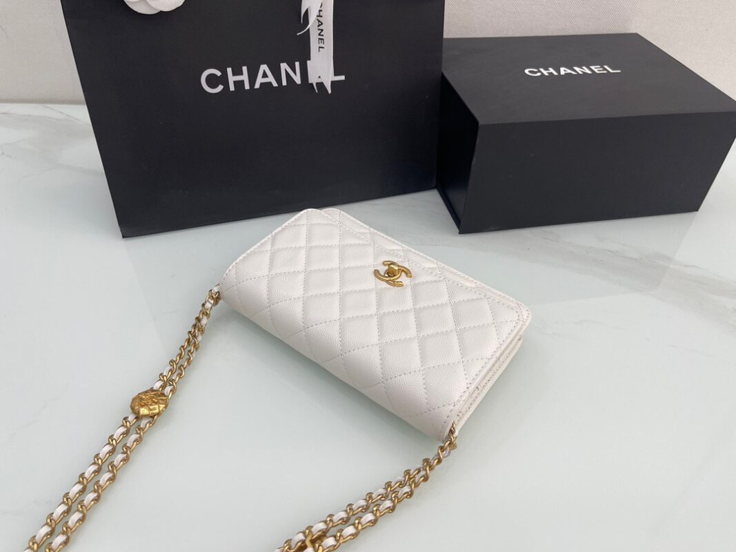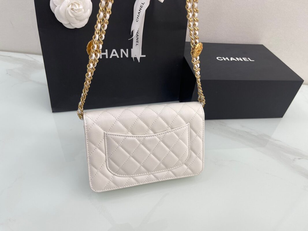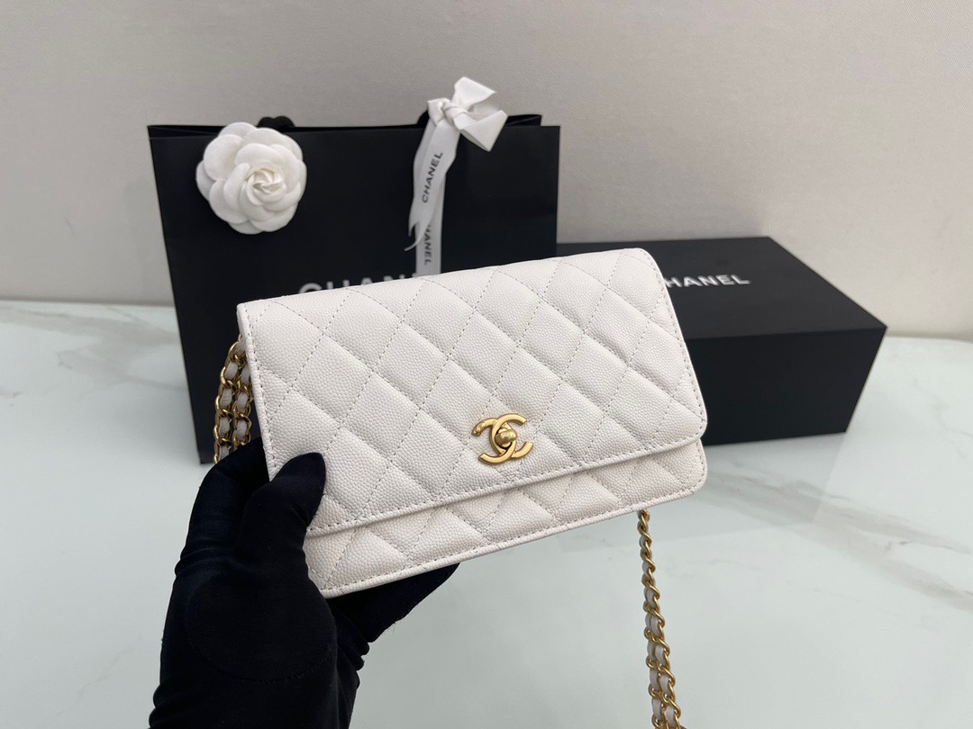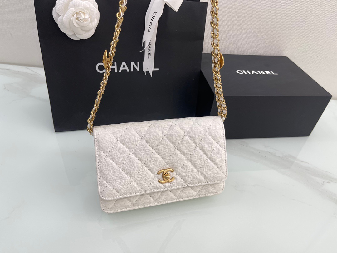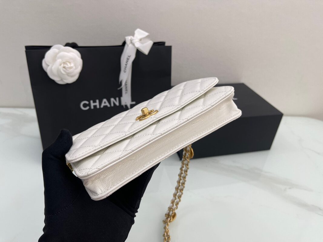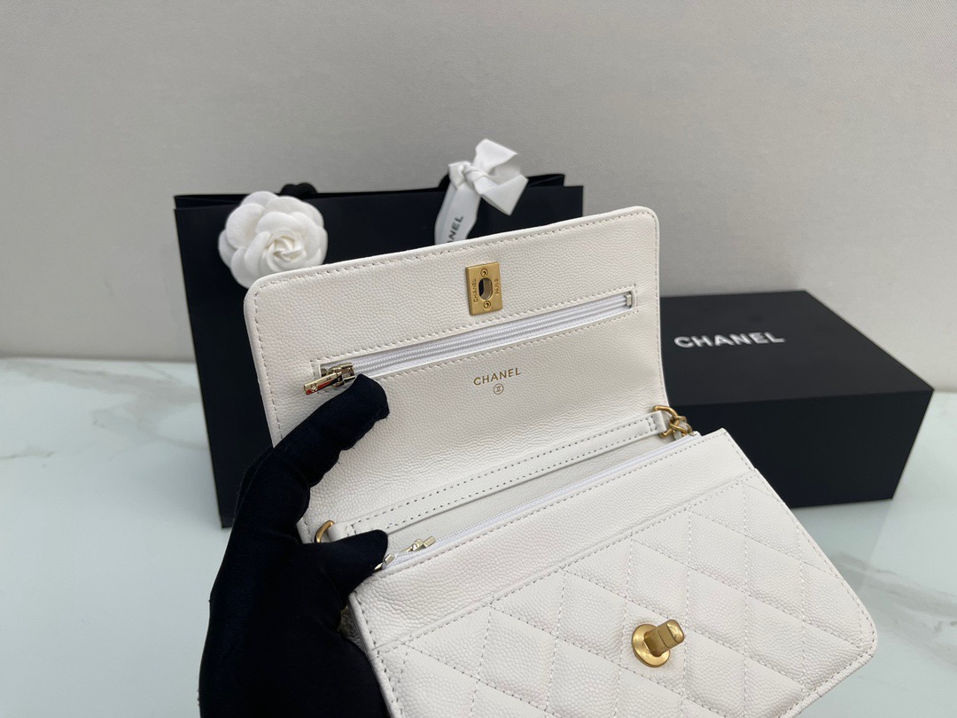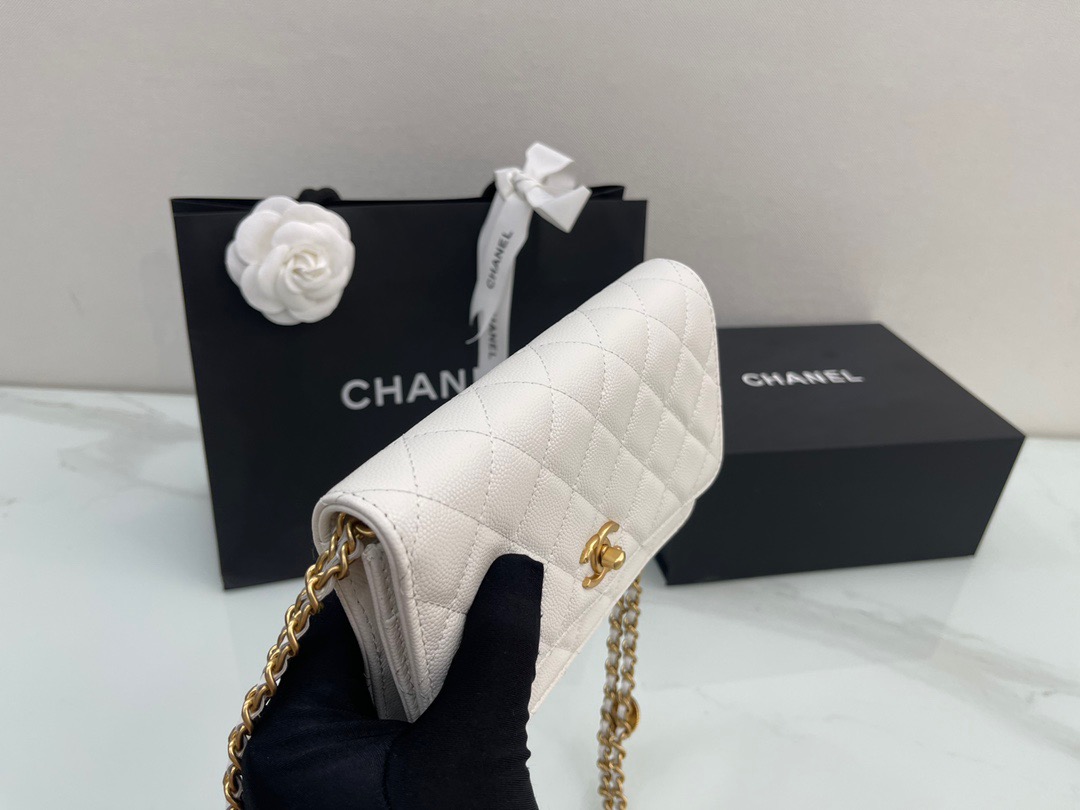π˜Ύπ™π™–π™£π™šπ™‘ 𝟐𝟐 22A Gold Coin Chain Flap Bag. WOC Fortune Bag. Caviar Leather. Size: 19cm