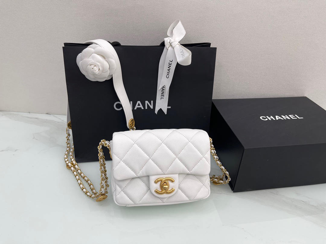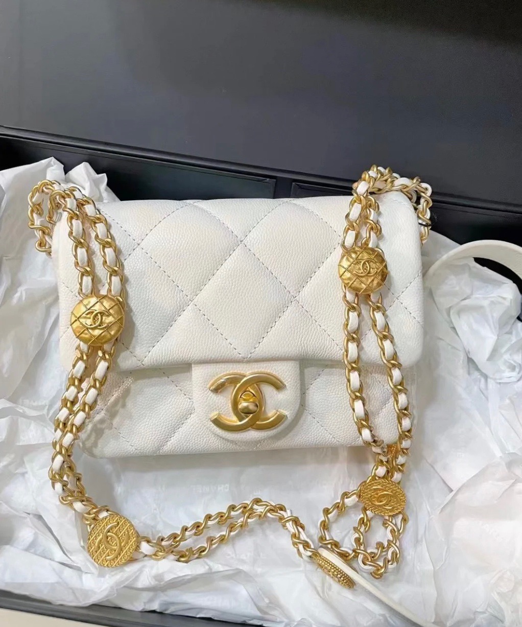 πΎπππ£ππ‘ ππ 22A Handicraft Workshop. Gold Coin Chain Flap Bag. Square Fatty. Cowhide 18cm