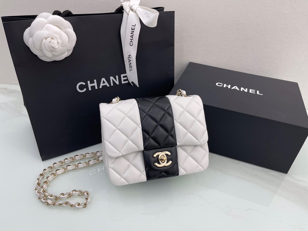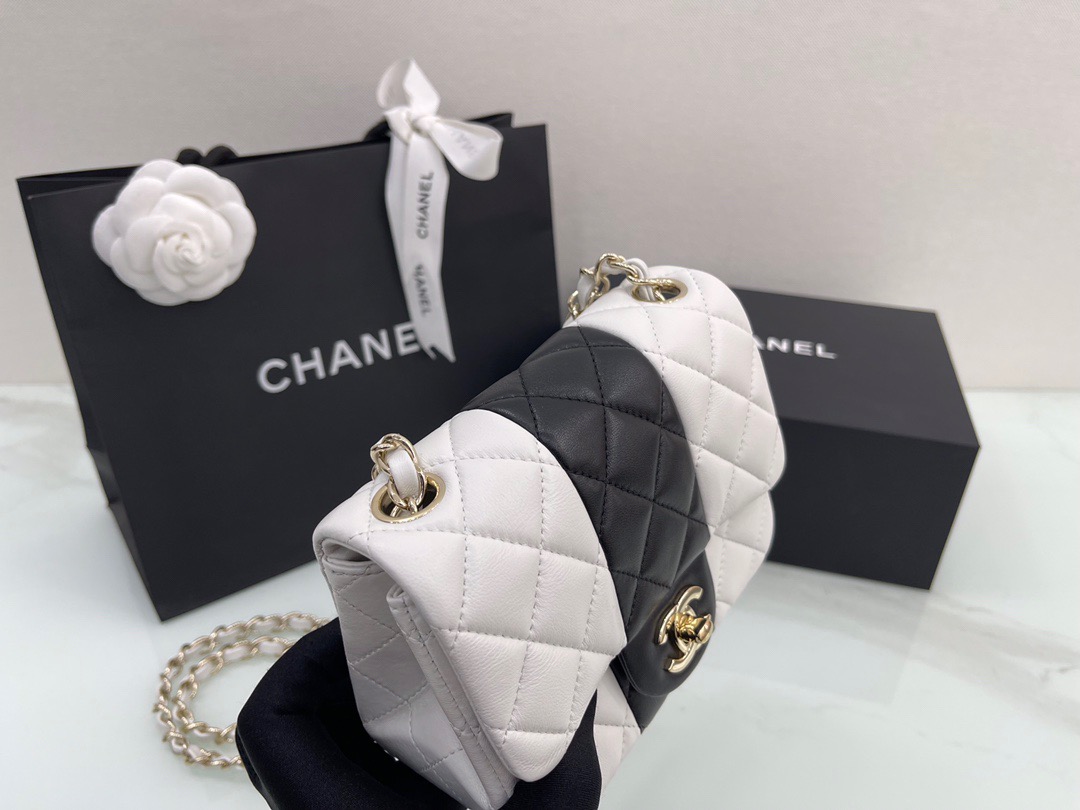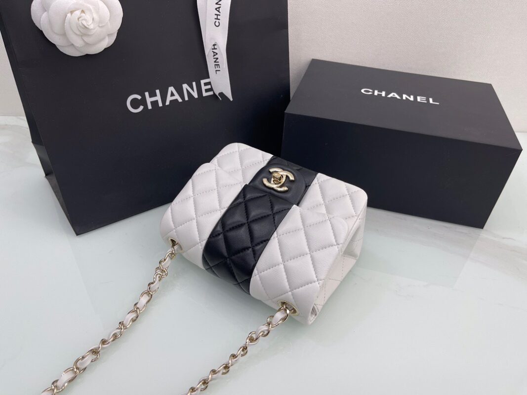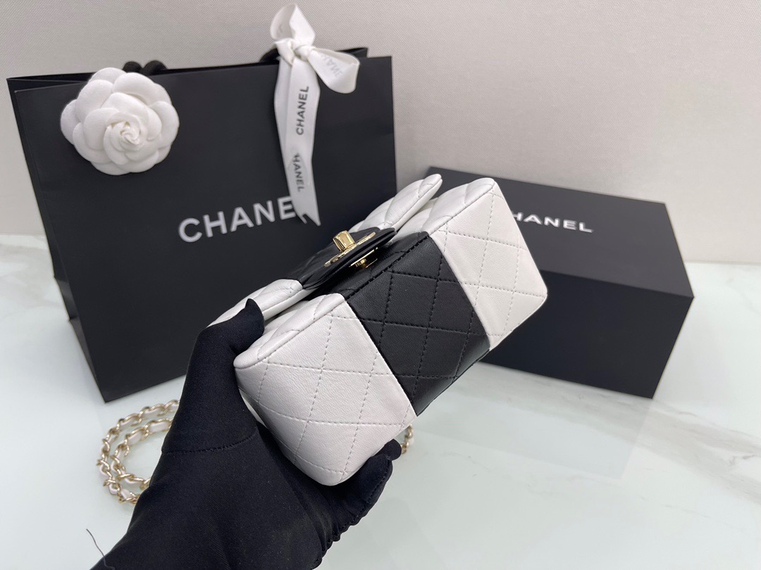 πΎπππ£ππ‘ 2022 spring/summer new style 22C catwalk style CF Square Fat Bag. White and Black color matching. Lambskin 17cm
