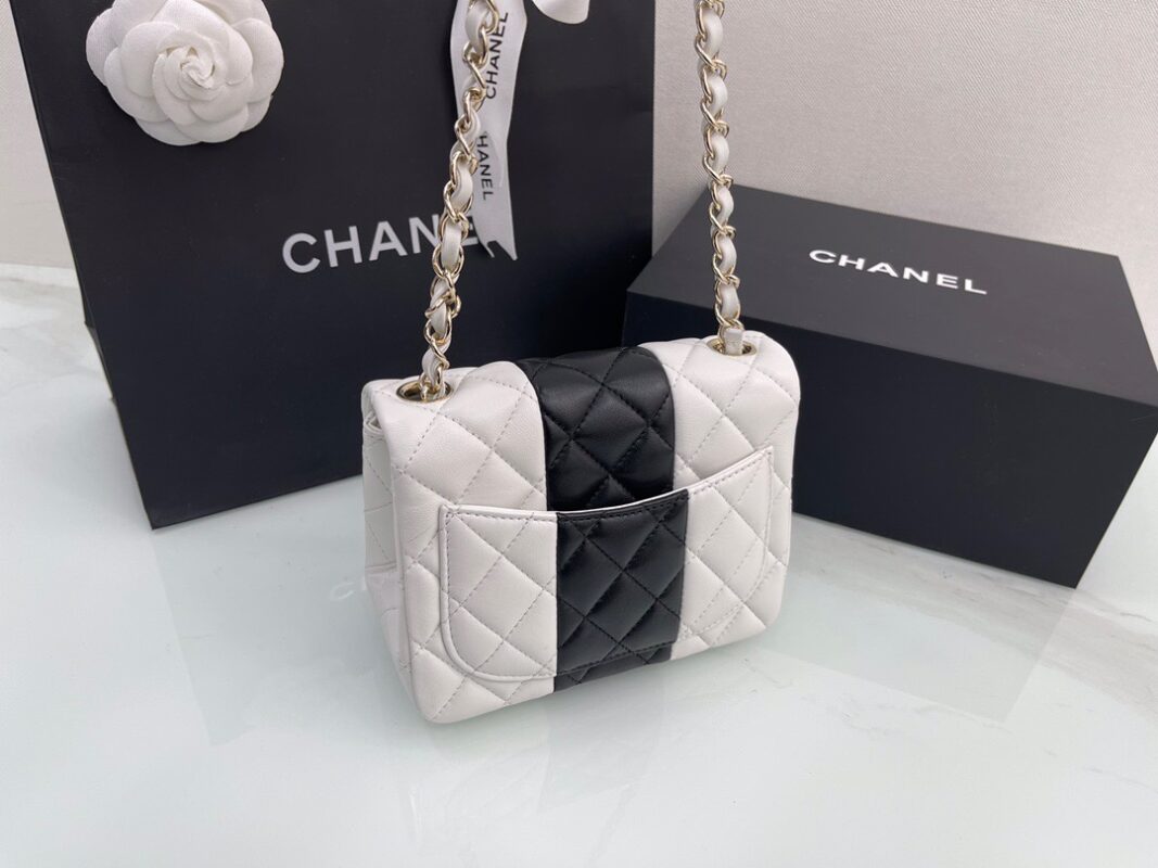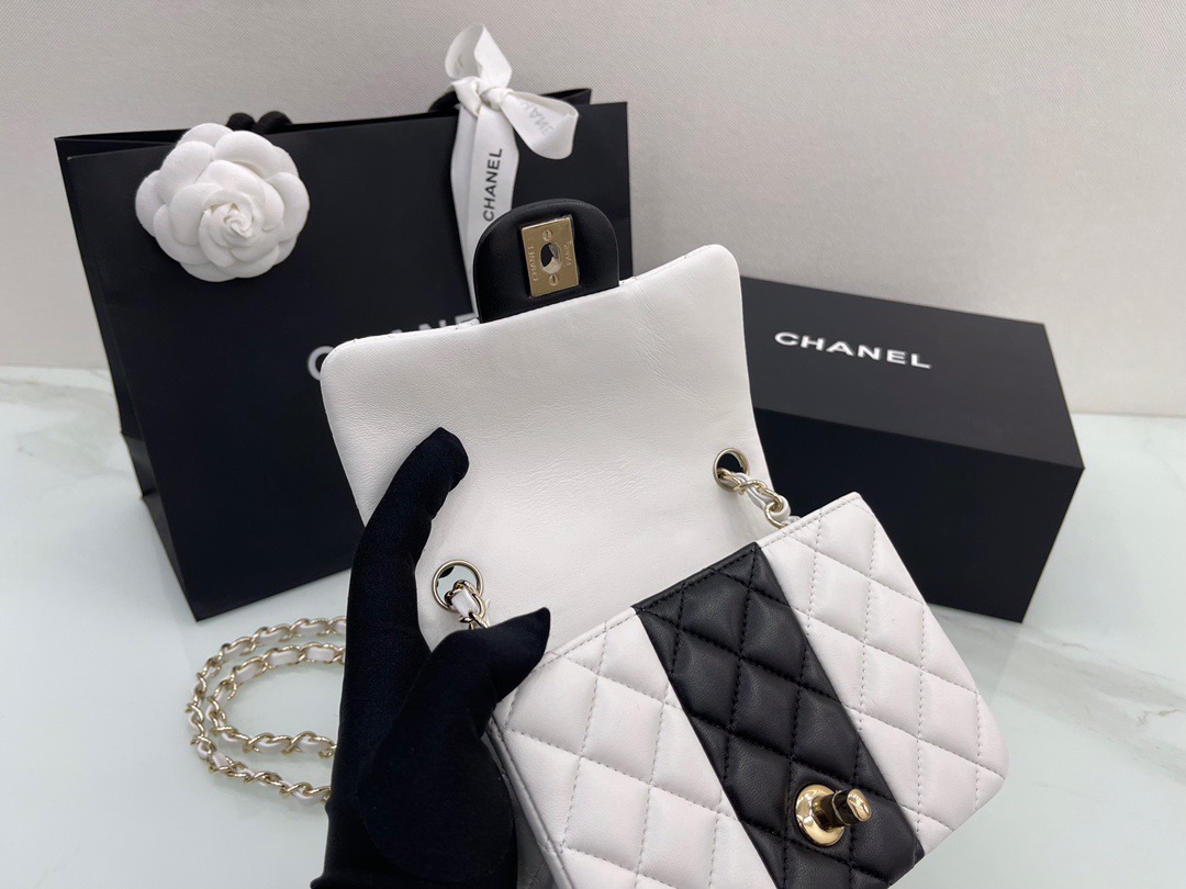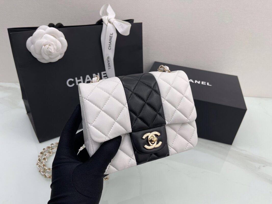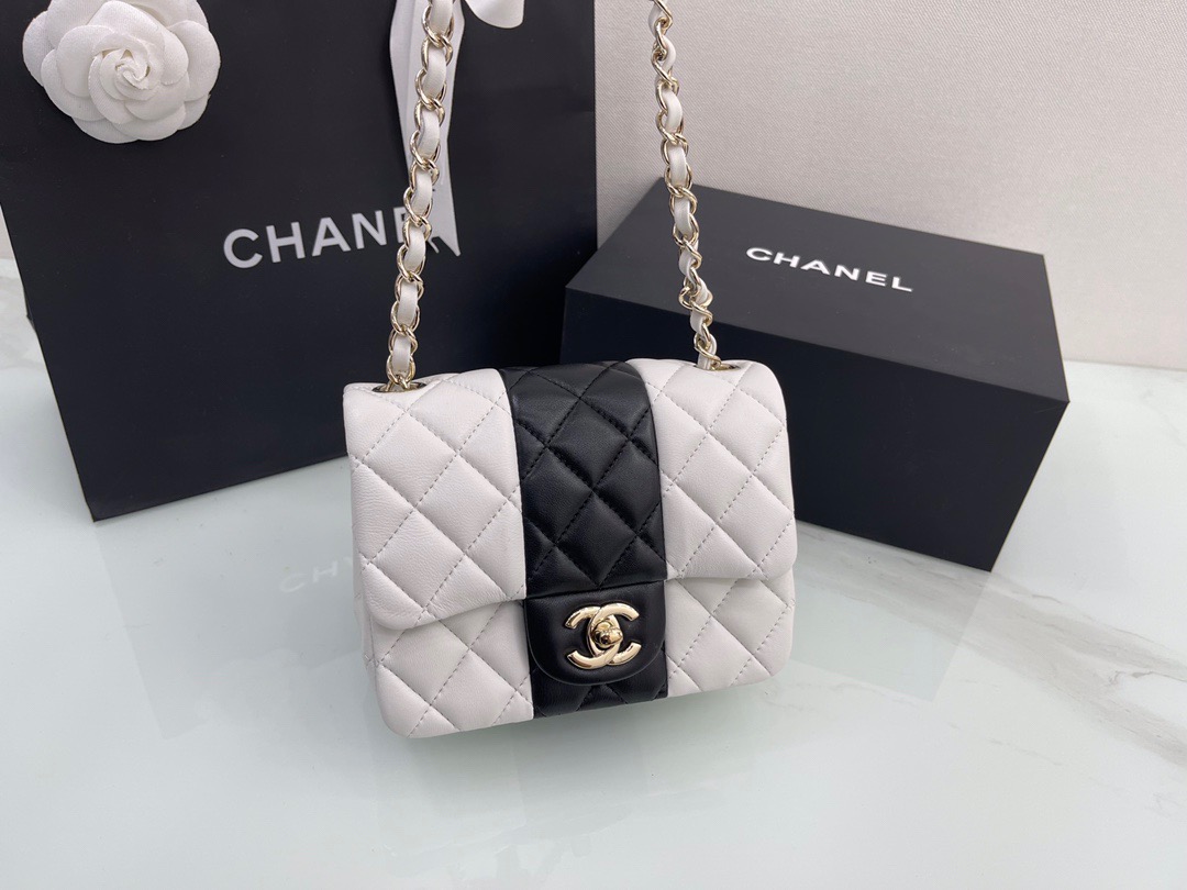 πΎπππ£ππ‘ 2022 spring/summer new style 22C catwalk style CF Square Fat Bag. White and Black color matching. Lambskin 17cm