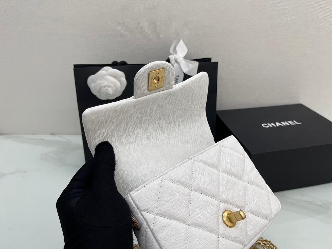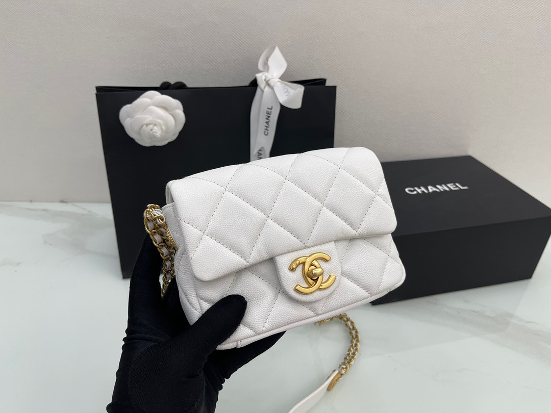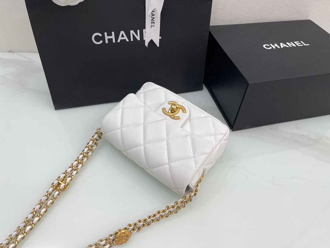 π˜Ύπ™π™–π™£π™šπ™‘ 𝟐𝟐22A Handmade Workshop . Gold Coin Chain Flap Bag Square Fatty. Cowhide 18cm
