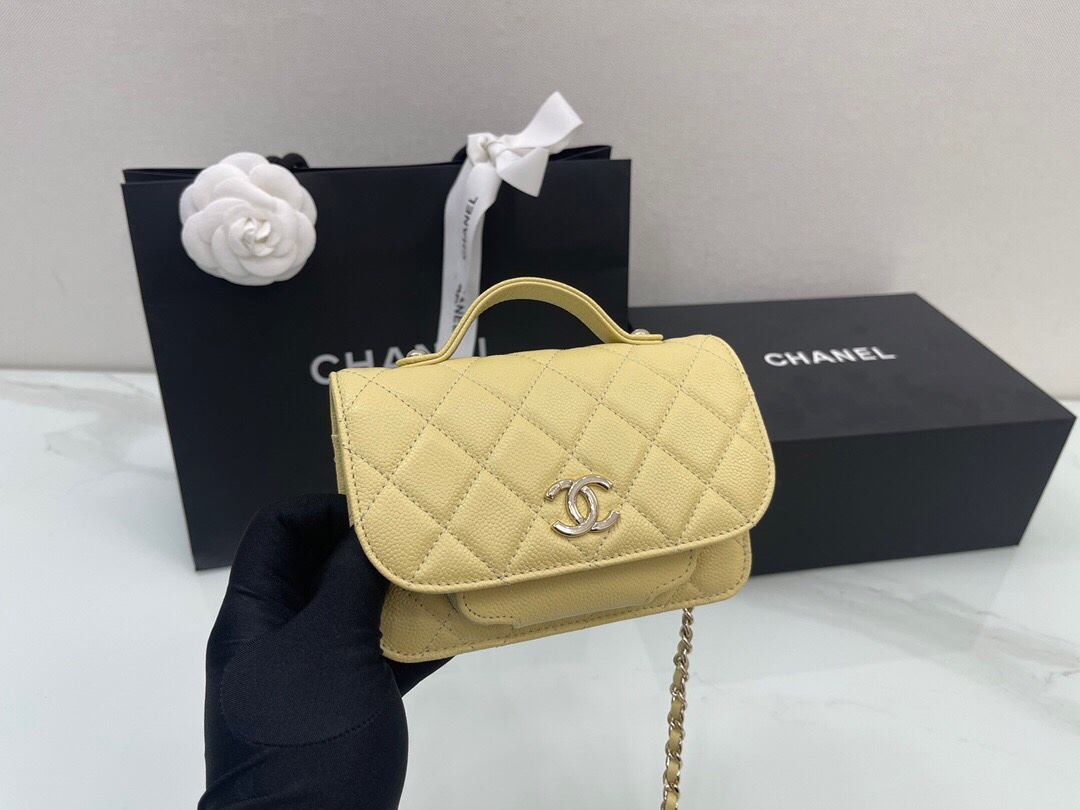 𝘾𝙝𝙖𝙣𝙚𝙡 •🆕🆕🆕22B The most popular style of this season Mini Messenger Bag💛 Super easy to match Leather Caviar 15*10.5*5cm