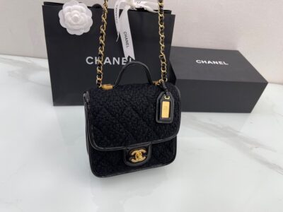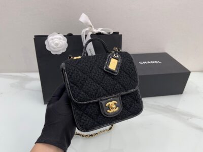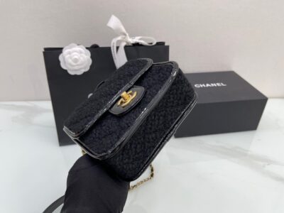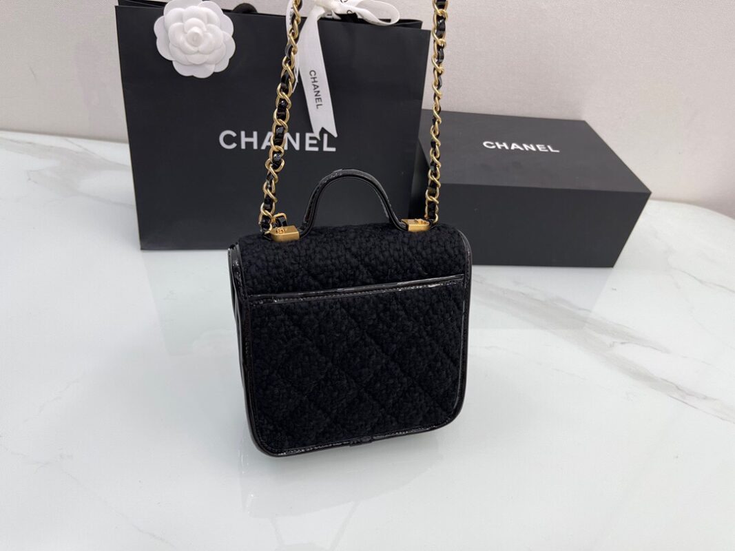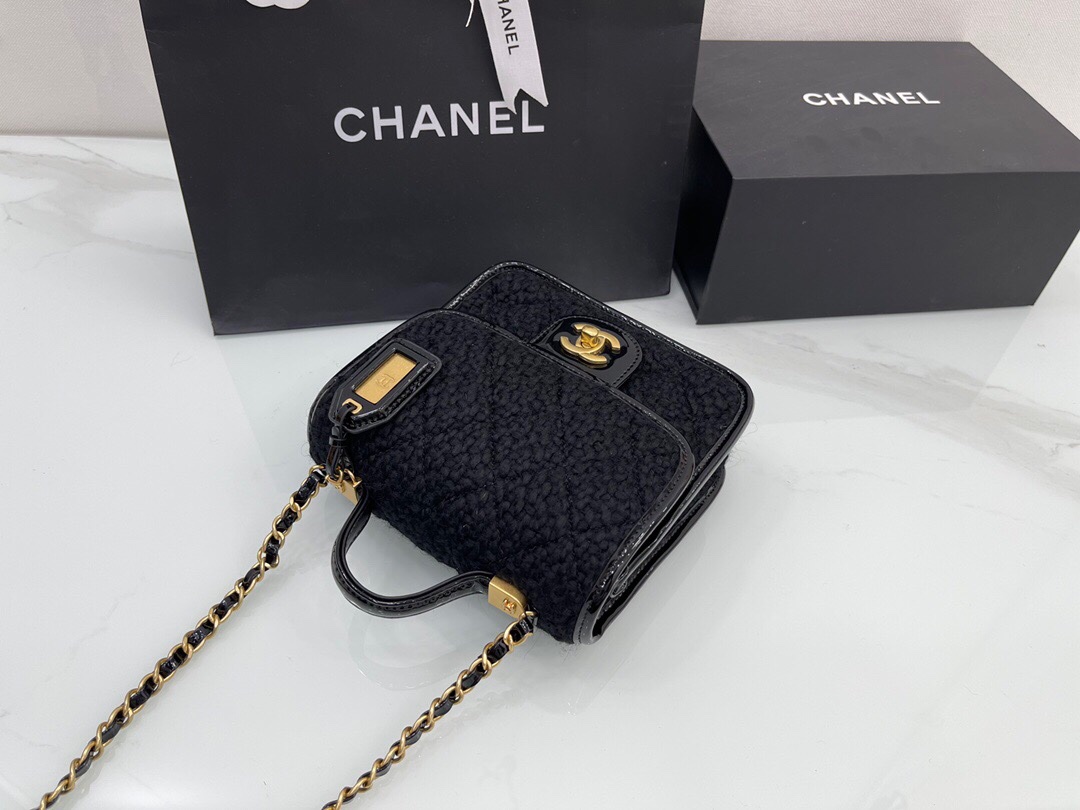 𝘾𝙝𝙖𝙣𝙚𝙡 •🆕🆕🆕22K Wool Tweed Handle Tofu Bag Nameplate Messenger Bag🖤22k tweed is really beautiful this autumn and winter! Very vintage!