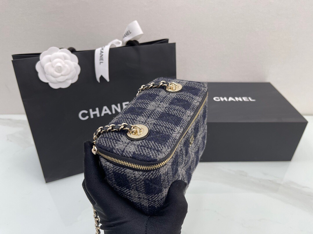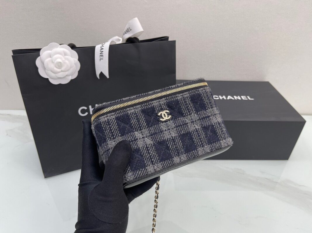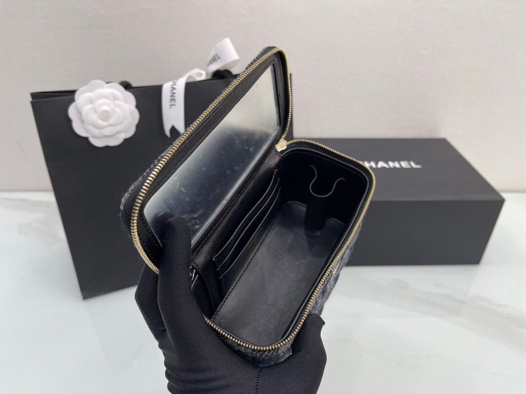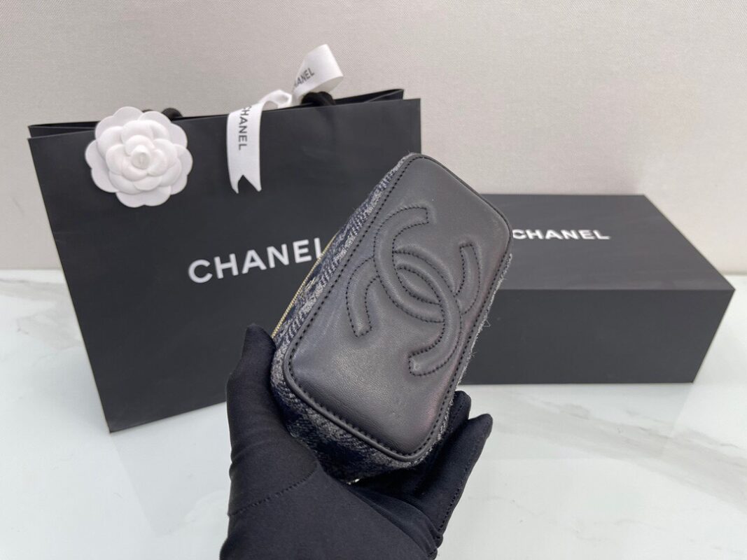 𝘾𝙝𝙖𝙣𝙚𝙡 •🆕🆕🆕 22K tweed long box cosmetic bag with built-in small mirror🪞big double C logo at the bottom〰️8.5 x 11 x 7CM