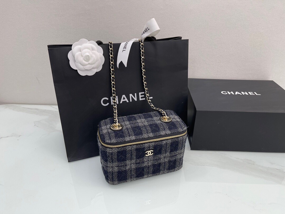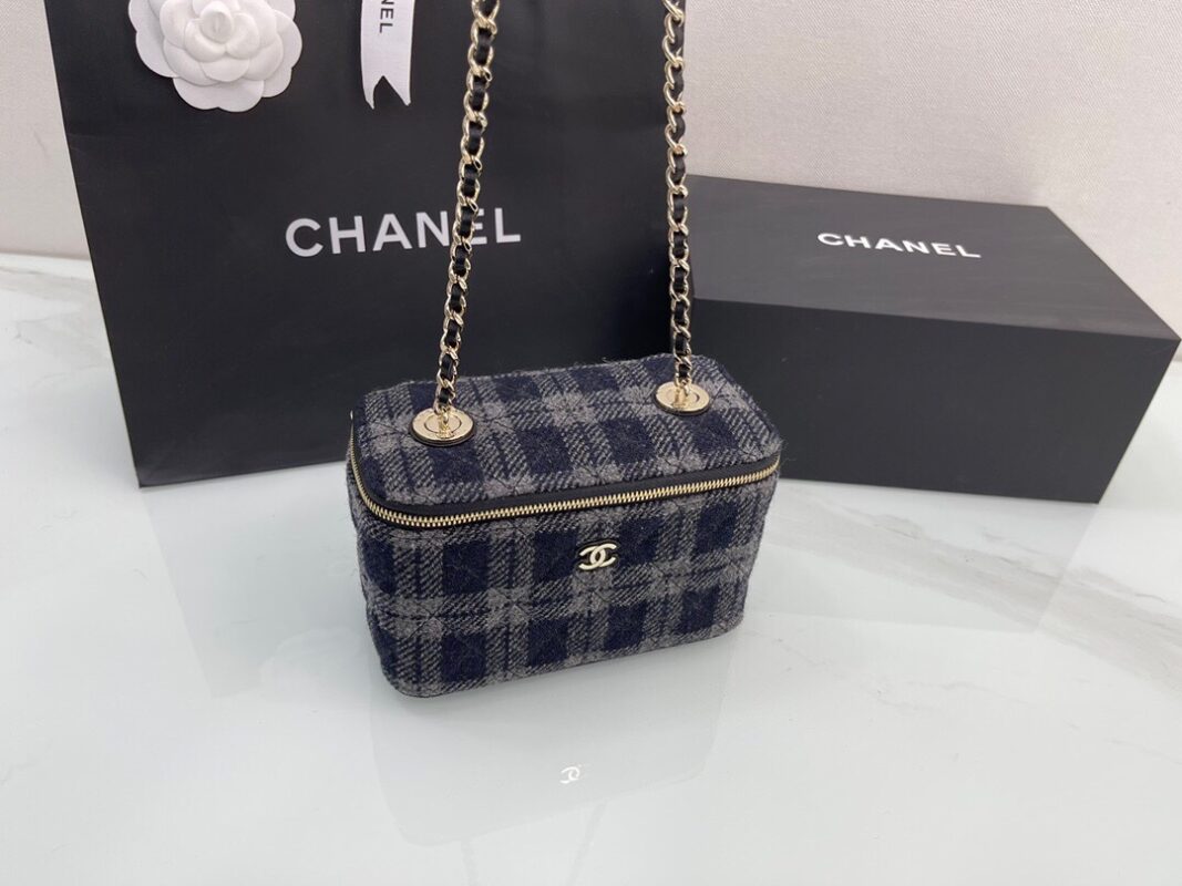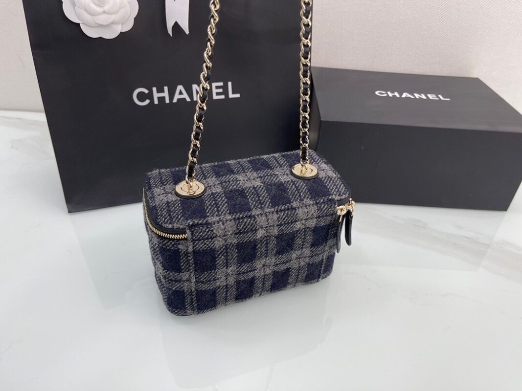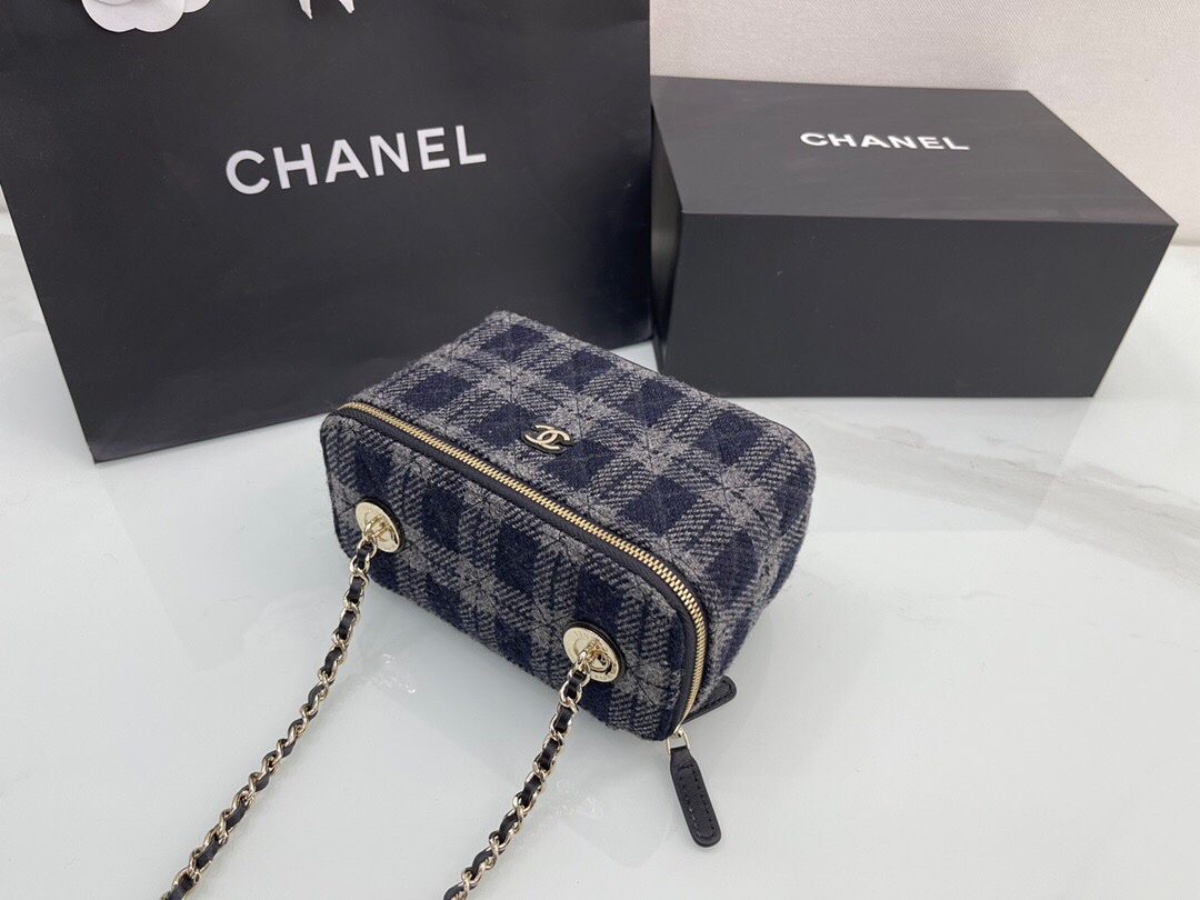 𝘾𝙝𝙖𝙣𝙚𝙡 •🆕🆕🆕 22K tweed long box cosmetic bag with built-in small mirror🪞big double C logo at the bottom〰️8.5 x 11 x 7CM