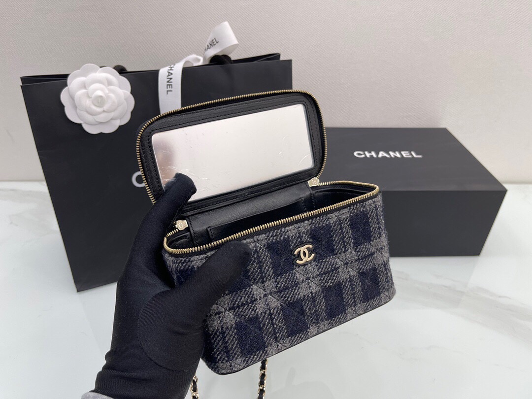 𝘾𝙝𝙖𝙣𝙚𝙡 •🆕🆕🆕 22K tweed long box cosmetic bag with built-in small mirror🪞big double C logo at the bottom〰️8.5 x 11 x 7CM