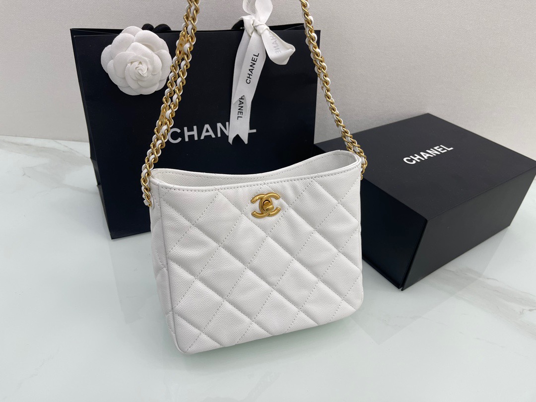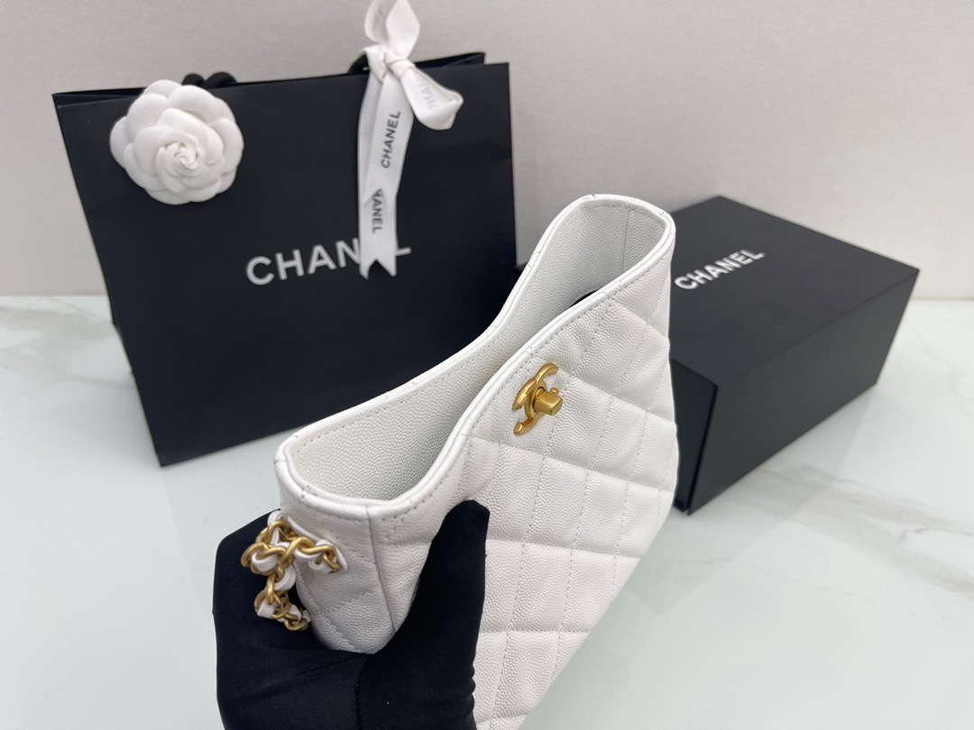πΎπππ£ππ‘ β’2022 Spring and Summer new style 22S all-match king Hobo underarm bag. Logo letter chain retro gold. Caviar cowhide