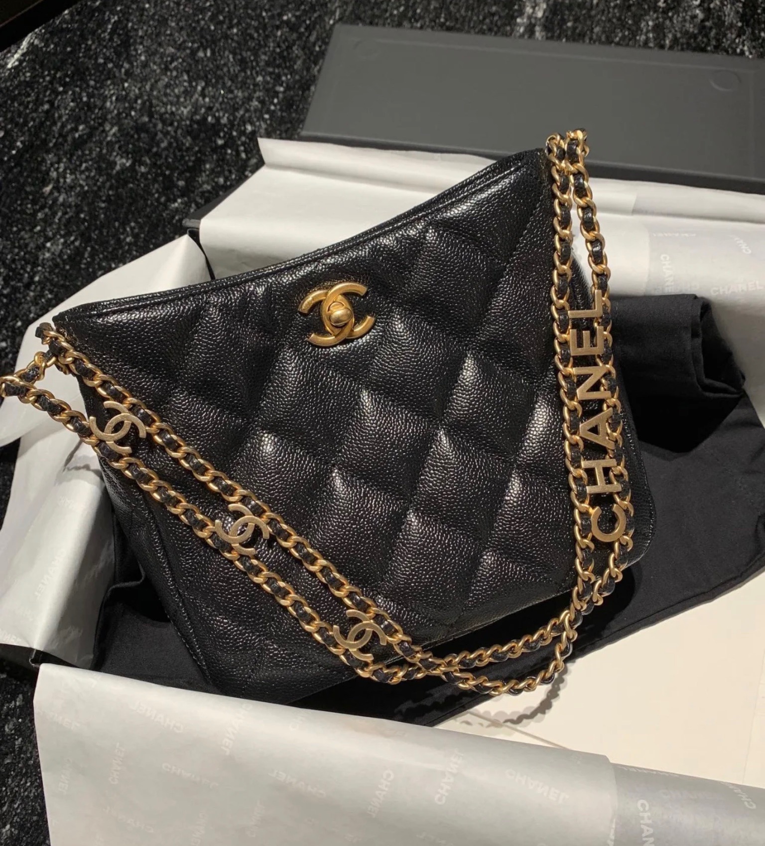 πΎπππ£ππ‘ 22 Spring/Summer new style 22S all-match king Hobo hippie underarm bag. Logo letter chain retro gold. Caviar cowhide.